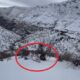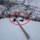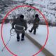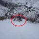 Eğimli arazide işçiler, karda kayan direkle birlikte sürüklendi; o anlar kamerada
