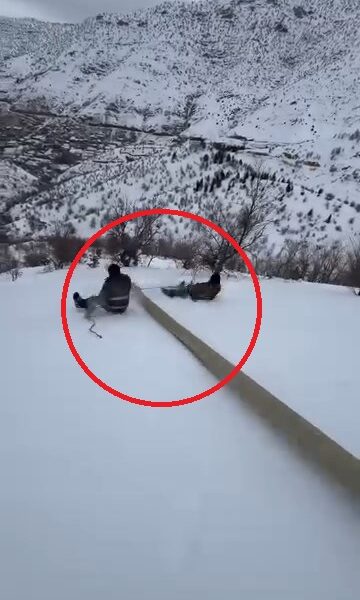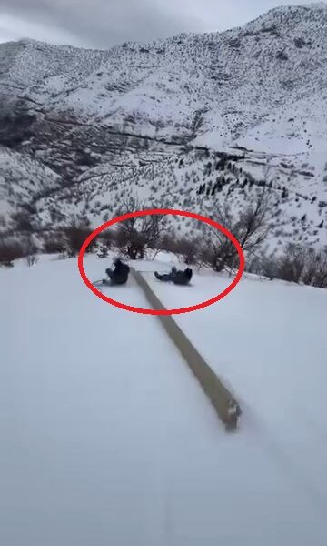 Çüngüş ilçesi kırsalında 2 enerji şirketi personeli, onarım için karla kaplı eğimli arazide sürükledikleri elektrik direğinin kaymasıyla dengelerini kaybedip düştü. Direkle birlikte sürüklenen işçiler bir süre sonra çalılara çarptı. İşçilerin yara almadan kurtulduğu o anlar, ekip arkadaşları tarafından cep telefonu kamerasıyla kaydedildi.