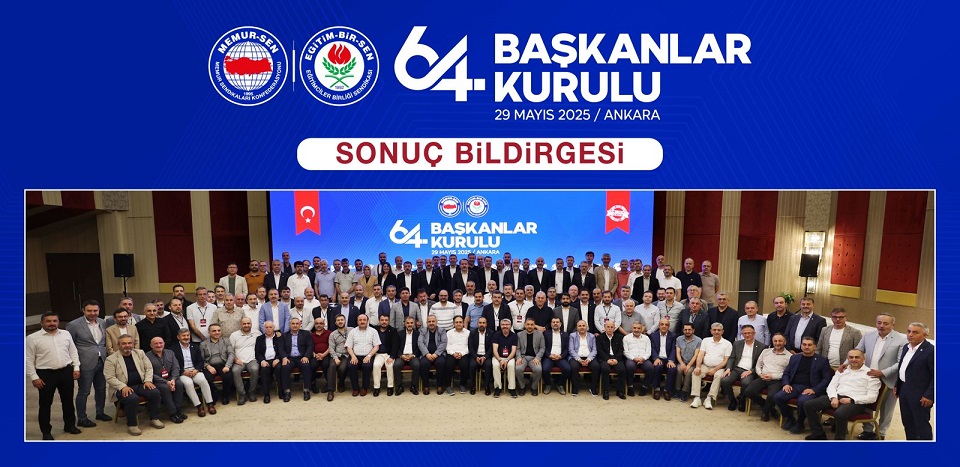 Şube başkanlarının söz alarak görüş ve önerilerini dile getirdiği toplantı, tüm başkanların katkısıyla oluşturulan 64’üncü Başkanlar Kurulu Toplantısı Sonuç Bildirgesinin yayımlanmasıyla sona erdi. Sonuç bildirgesinde, insan haklarına yönelik şiddete, baskıya, zulme ve haksızlığa karşı çıkmaya, kazanılmış hakların korunması ve yeni hakların elde edilmesi için çalışmaya, sorunların çözülmesi için mücadele etmeye devam edileceği ifade edildi.