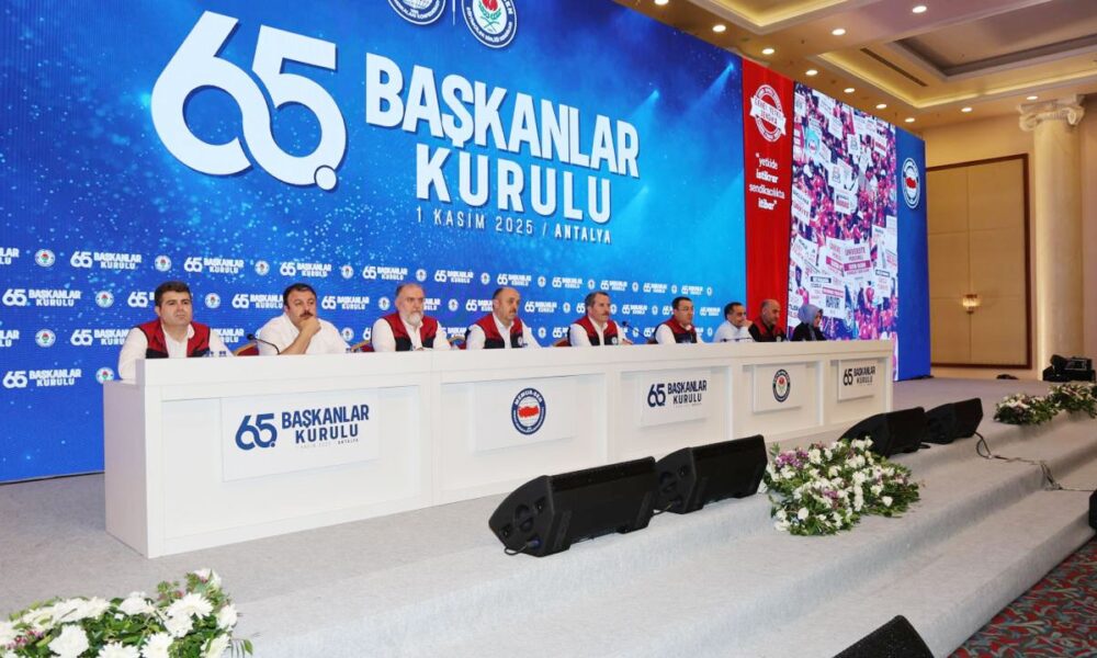 Eğitim-Bir-Sen 65inci Başkanlar Kurulu Toplantısı, Antalyada gerçekleştirildi. Eğitim-Bir-Sen ve Memur-Sen Genel Başkanı Ali Yalçın başkanlığında yapılan toplantıda; 8’inci Dönem Toplu Sözleşme süreci, eğitim çalışanlarının sorunları, eğitim gündemine ilişkin gelişmeler, gelecek döneme ilişkin sendikal politikalar ile ülke ve dünya gündemi ele alınırken Türkiye Büyük Millet Meclisi’ndeki (TBMM) bütçe görüşmelerinde kamu görevlilerinin kayıplarını telafi edecek düzenlemelerin 2026 yılı Merkezi Yönetim Bütçe Kanunu’na eklenmesi, yeni bir sendika ve toplu sözleşme kanunu çağrısı yapıldı. Toplantı, tüm başkanların katkısıyla oluşturulan 65’inci Başkanlar Kurulu Toplantısı Sonuç Bildirgesi’nin yayımlanmasıyla sona erdi.