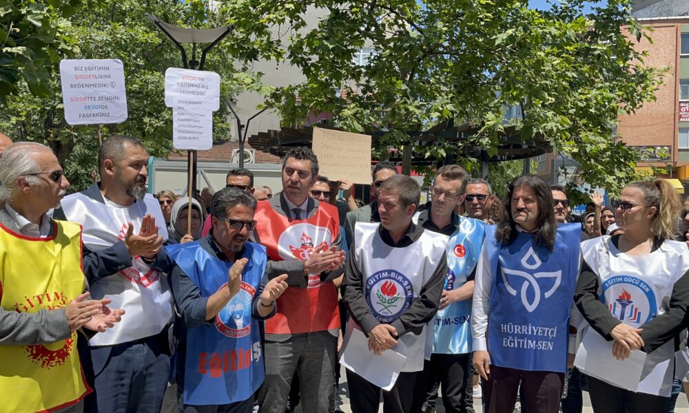 Sendikaların ortak basın açıklamasını okuyan Eğitim Bir-Sen Kocaeli Şube Başkanı Şahin Yaşlık, “Öğretmenlerimize ve olay anında sınıfta bulunan öğrencilerimize yaşatılanlar, görmezden gelinebilecek ve cezasız kalabilecek sıradan olaylar değildir. Eğitimciler her fırsatta itilip kakılacak, sahipsiz bırakılacak bir pozisyonda hiç değildir. Bu şiddet eylemlerindeki artışta, şiddete başvuran kişilerin, Yaptığım yanıma kar kalıyor düşüncesinin ve bunu haklı çıkaran yasal düzenleme ve uygulamaların büyük rolü vardır. Toplumdaki şiddeti eğitimle yok etmenin hesabını yaparken, şiddeti eğitimin içine sokmaya davetiye çıkaran uygulamaların kabul edilebilir bir yanı yoktur. Eğitim çalışanlarına karşı eğitim-öğretim kamu hizmetinin sunumundan kaynaklı şiddet eylemlerine yönelik cezai ve hukuki tedbirlerin en sert şekilde alınması elzemdir. Eğitim çalışanları, kendilerine yönelik şiddet olaylarına karşı caydırıcı nitelikte münhasıran bir cezai müeyyide getirilmesini, şiddete uğrayana, çalışana da hukuki koruma sağlayacak türden yasal düzenlemelerin gerçekleştirilmesini acilen talep etmekte ve beklemektedir” ifadelerini kullandı.