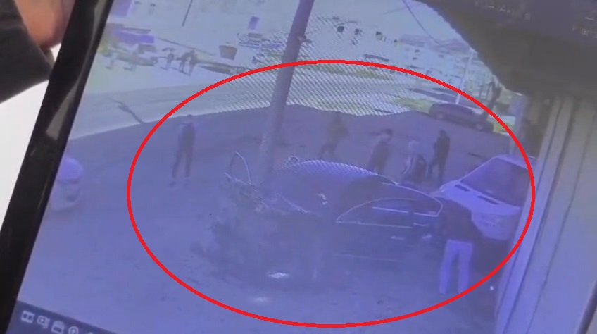 Kaza anı, çevredeki iş yerinin güvenlik kamerasına yansıdı. Görüntülerde, süratle gelen otomobilin park halindeki 2 araca çarptığı ve otomobilden 5 kişinin indiği görülüyor.