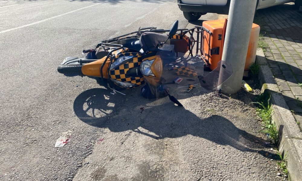 Ehliyetsiz sürücünün çarptığı motosikletteki kurye yaralandı; kaza kamerada