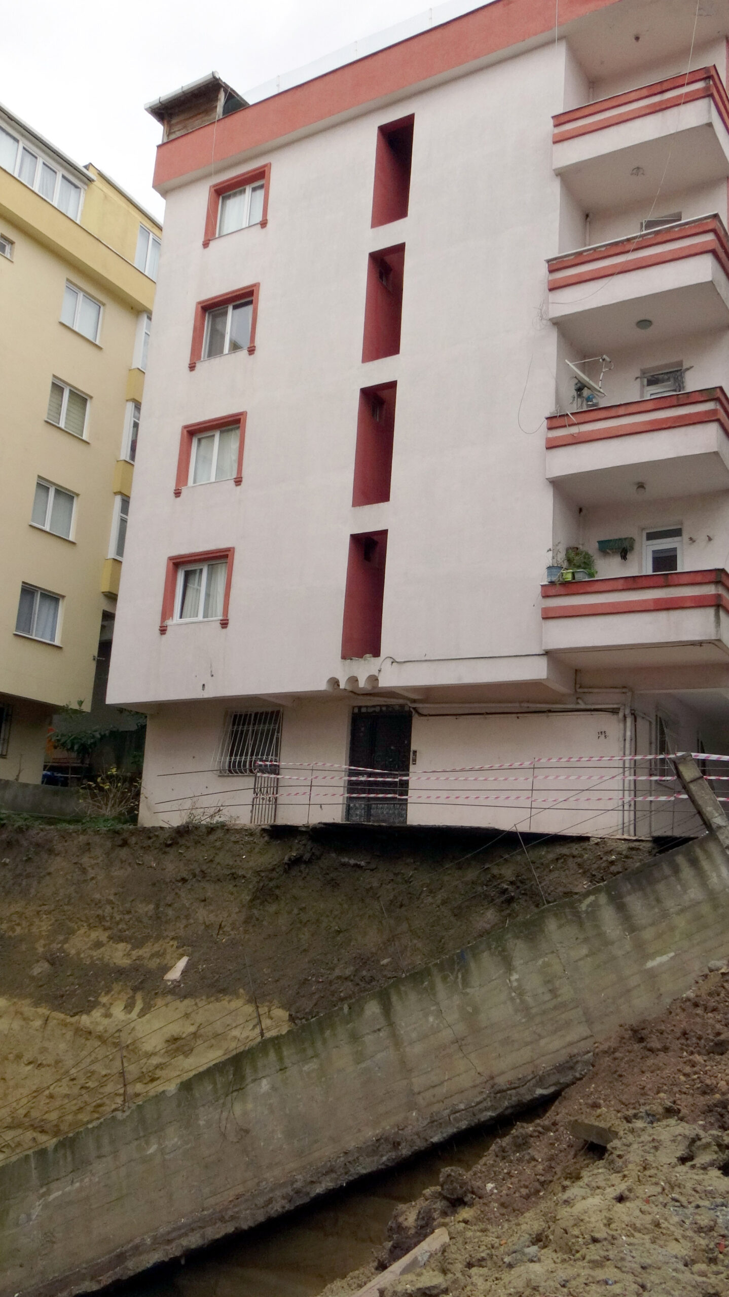 AVCILAR’da, temel kazısı yapılan inşaat alanının yanındaki 4 katlı binanın istinat duvarı çöktü.
