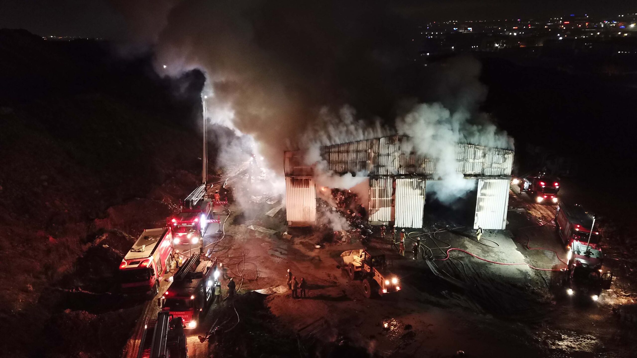 Ek havadan fotoğraflar // Tuzla’da geri dönüşüm tesisinde yangın