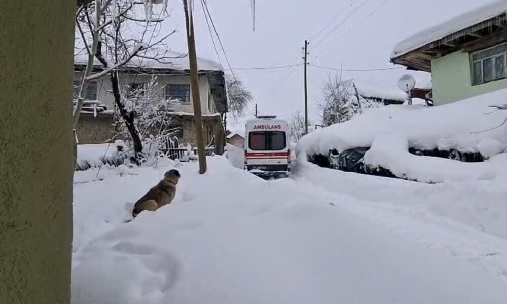Ekipler, kardan kapanan yolu açıp köydeki hastayı hastaneye ulaştırdı