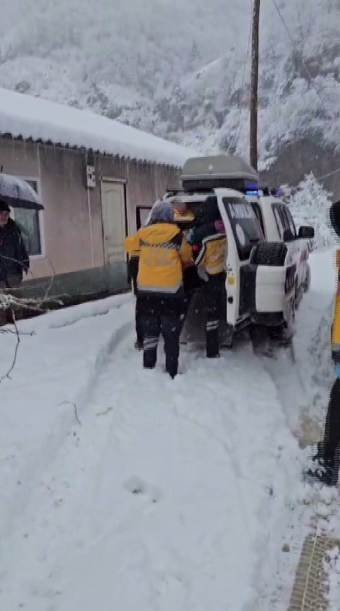 Ekipler, yolu kardan kapanan köydeki hastayı hastaneye ulaştırdı