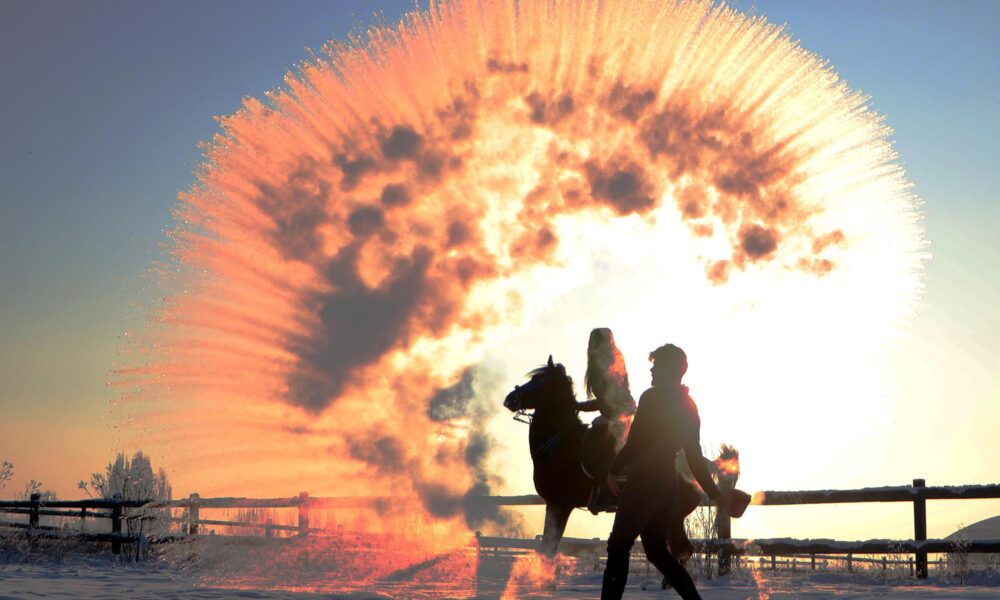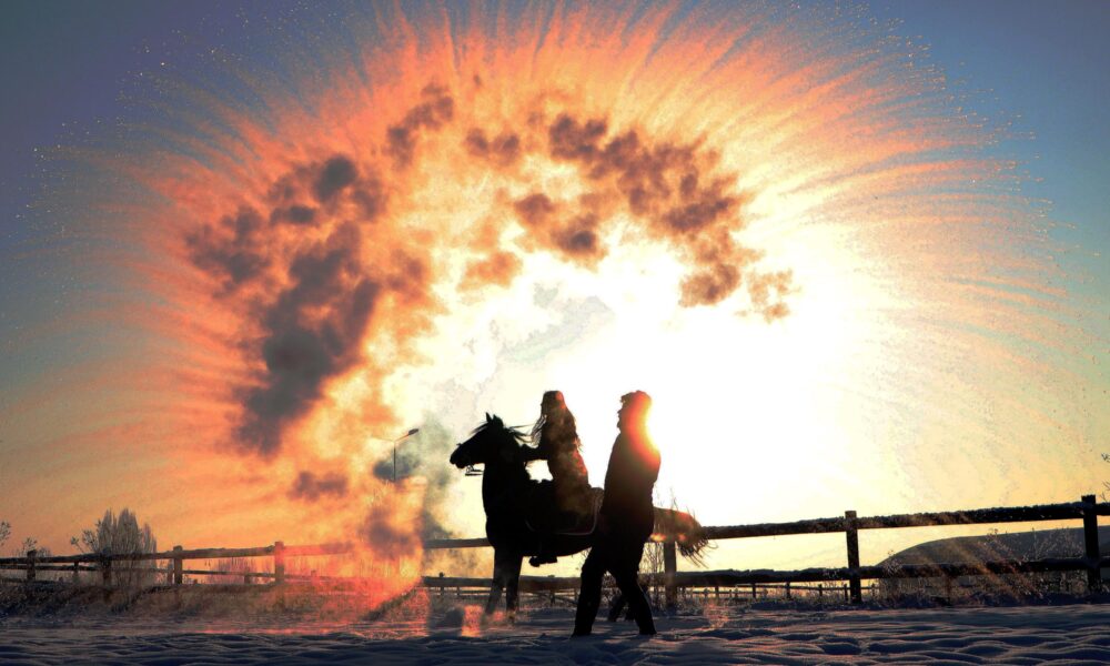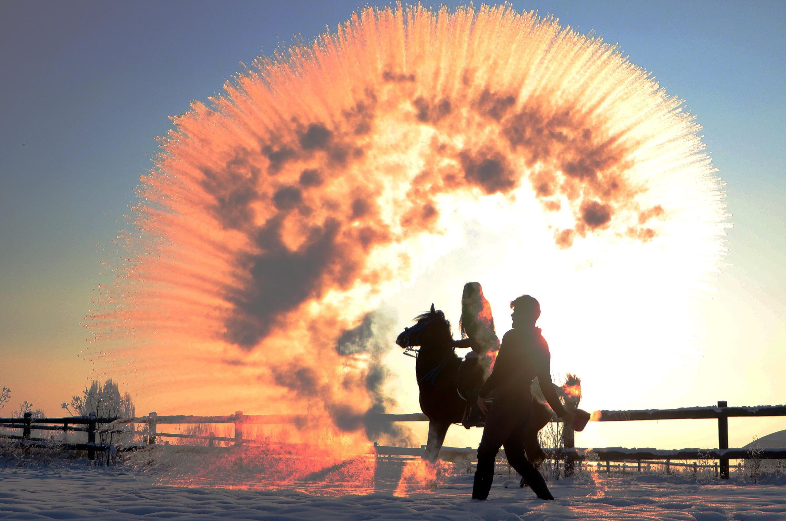 Doğu Anadolu Bölgesinde dondurucu soğuk yaşamı olumsuz etkilerken, fotoğraf tutkunları için ise güzel manzaralar ortaya çıktı. Atatürk Üniversitesi yerleşkesindeki Manej Alanı ve Atçılık Koordinatörlüğü’ndeki görevlilerin havaya attığı sıcak suyun donarak kristalleşmesi, ilgi çeken görüntüler oluşturdu. Sema Tekin, “Özellikle sabah ya da akşamüzeri havaya atılan sıcak su anında kara dönüşüyor ve güneşin de verdiği kırmızı renkle tablo gibi görüntü oluşturuyor. At binmek için buraya gelenler tarafından sıkça yapılan bu şov büyük ilgi görüyor” diye konuştu.