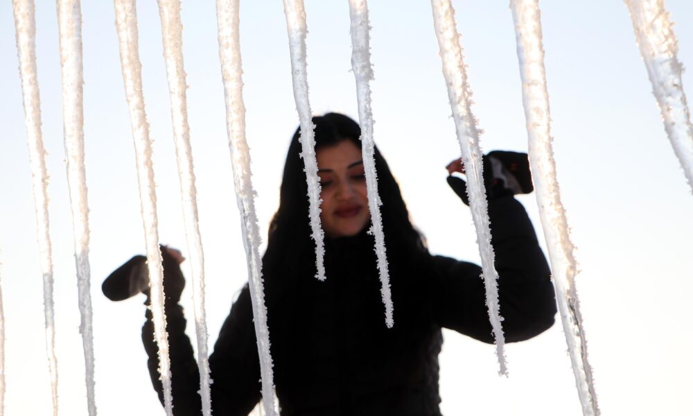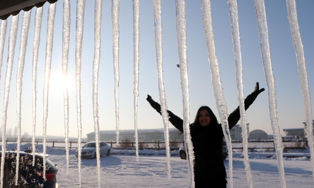 Eksi 25,3 ile Türkiye’nin en soğuk kenti Erzurum’da havaya atılan sıcak su, buz oldu