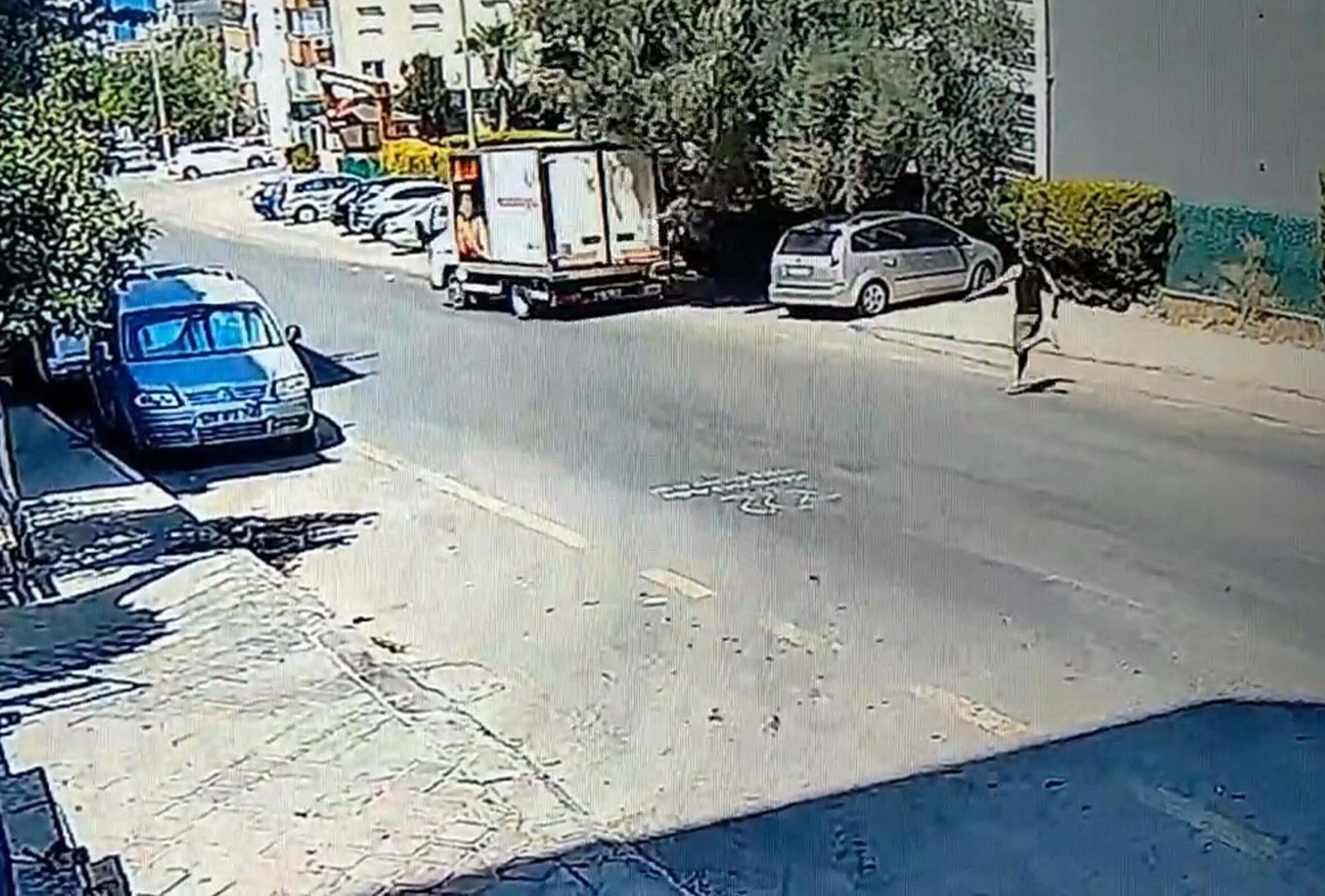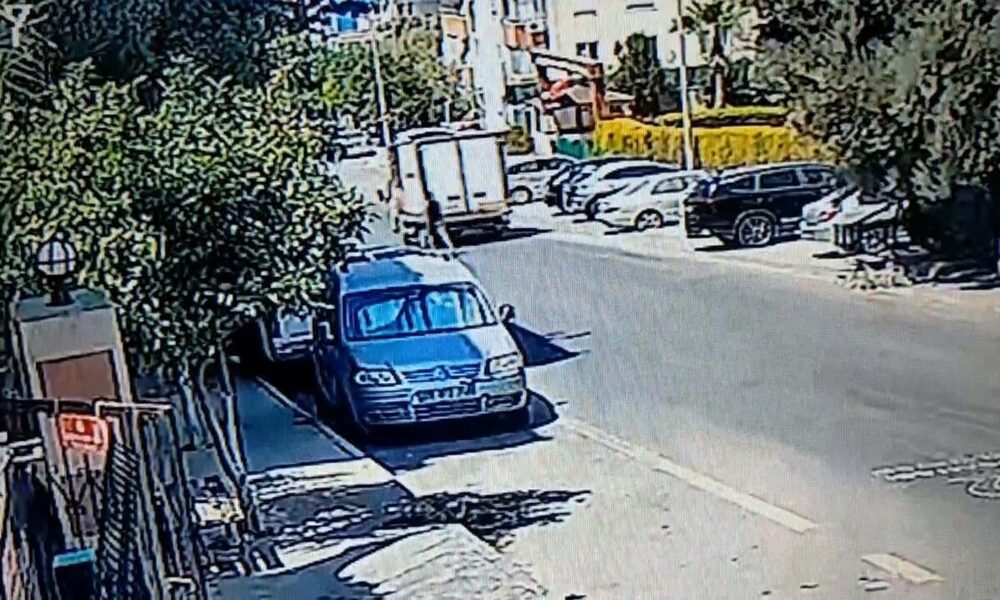 El freni boşalıp hareket eden kamyonetinin peşinden koştu; o anlar kamerada