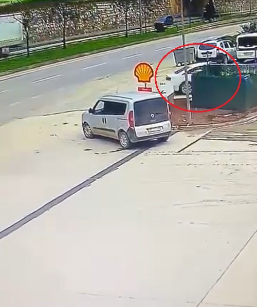 Kaza, dün saat 10.30 sıralarında meydana geldi. Sürücüsünün el frenini çekmeyi unutup, Gemlik Terminali’ne park ederek uzaklaştığı otomobil, dakikalar içinde kendi kendine hareket etti. Geri geri giden otomobil akaryakıt istasyonunun yanından ana yola çıkarak, yola paralel halde durdu. O sırada seyir halinde olan 16 BLE 679 plakalı otomobili, yoldaki otomobile çarptı.