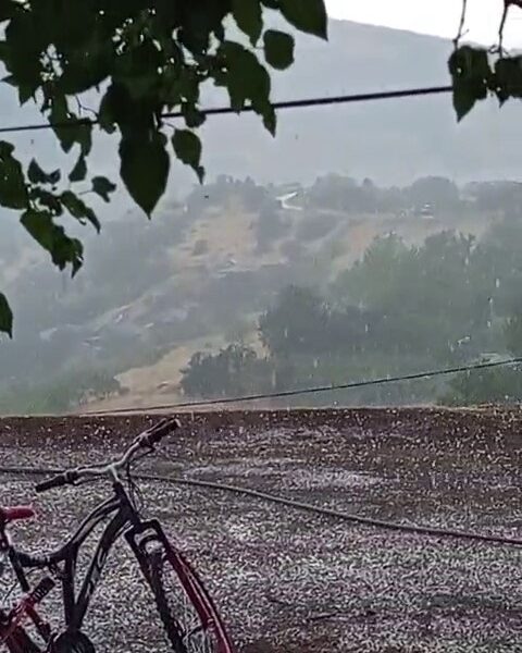 Kent genelinde mevsim normallerinin üzerinde seyreden sıcaklıklar etkisini sürdürürken, Karakoçan ilçesine bağlı Bazlama köyünde dolu yağışı etkili oldu. Kısa sürede çevreyi beyaza bürüyen dolu, cep telefonu kamerasıyla kaydedildi.