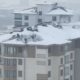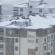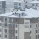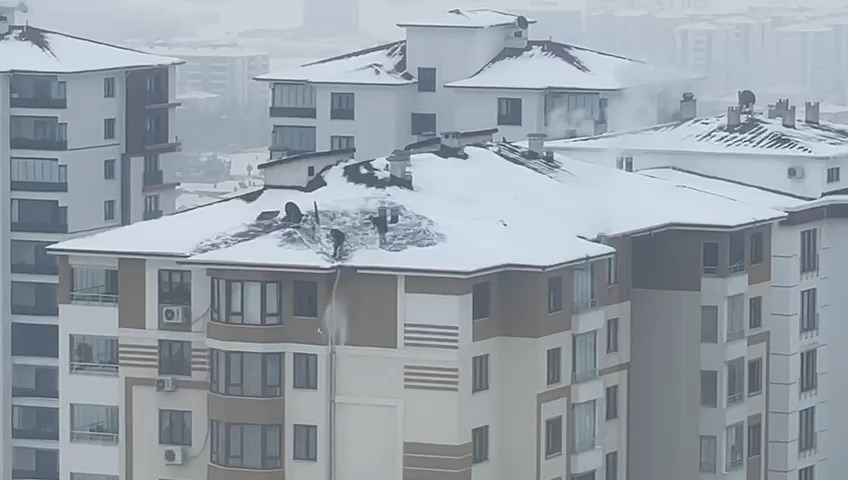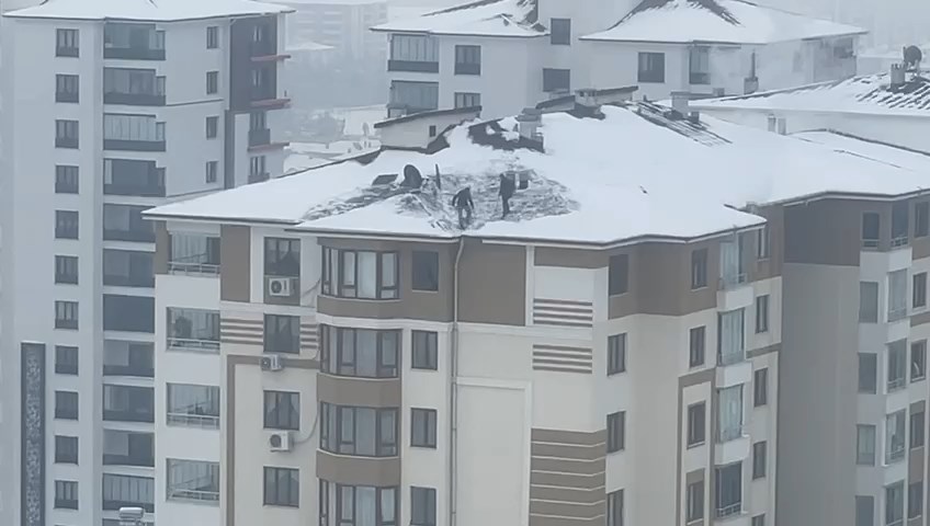 Elazığ’da 10 katlı binanın çatısında tehlikeli kar temizliği