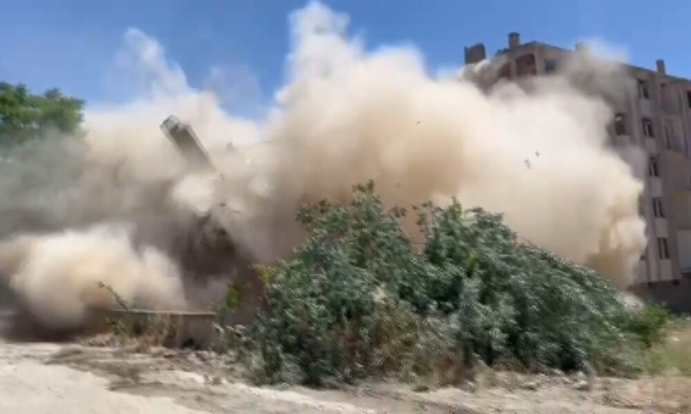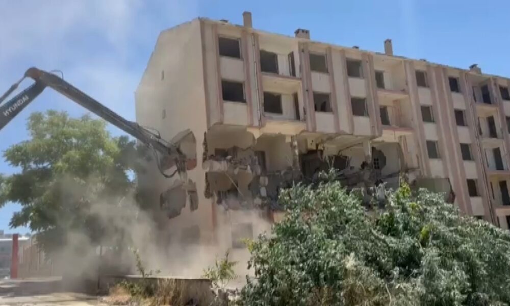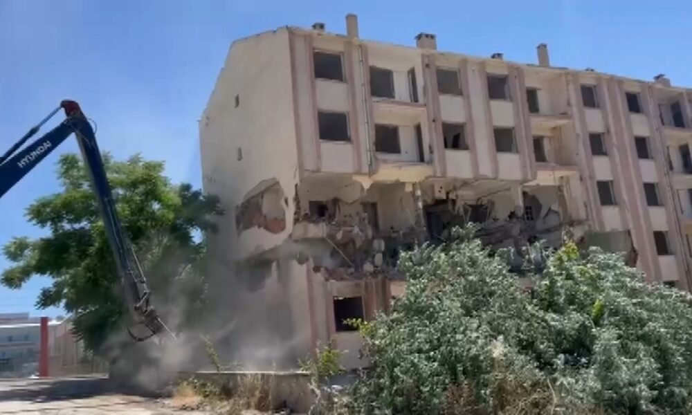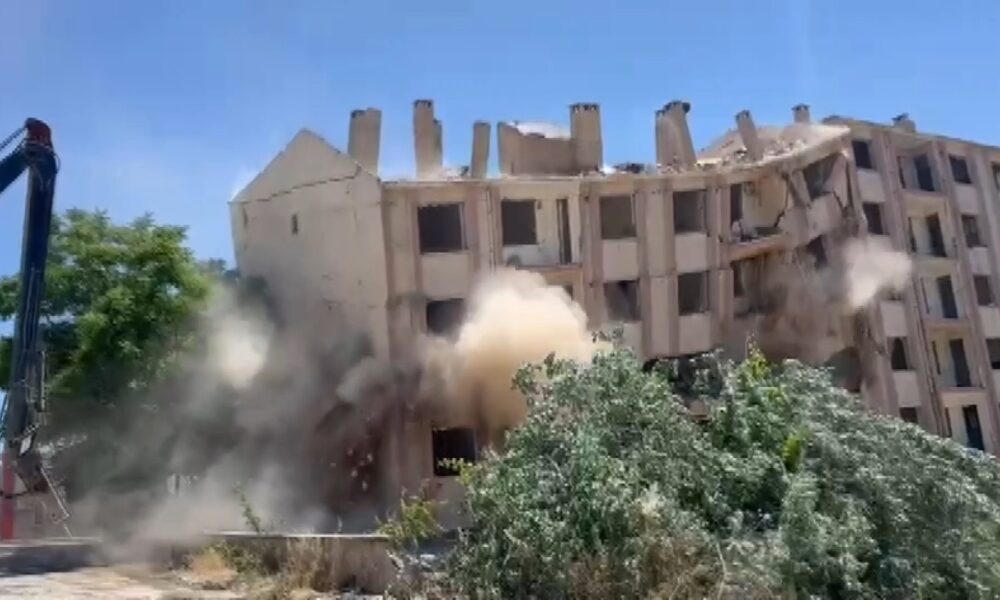 Elazığ’da ağır hasarlı bina kontrollü olarak yıkıldı