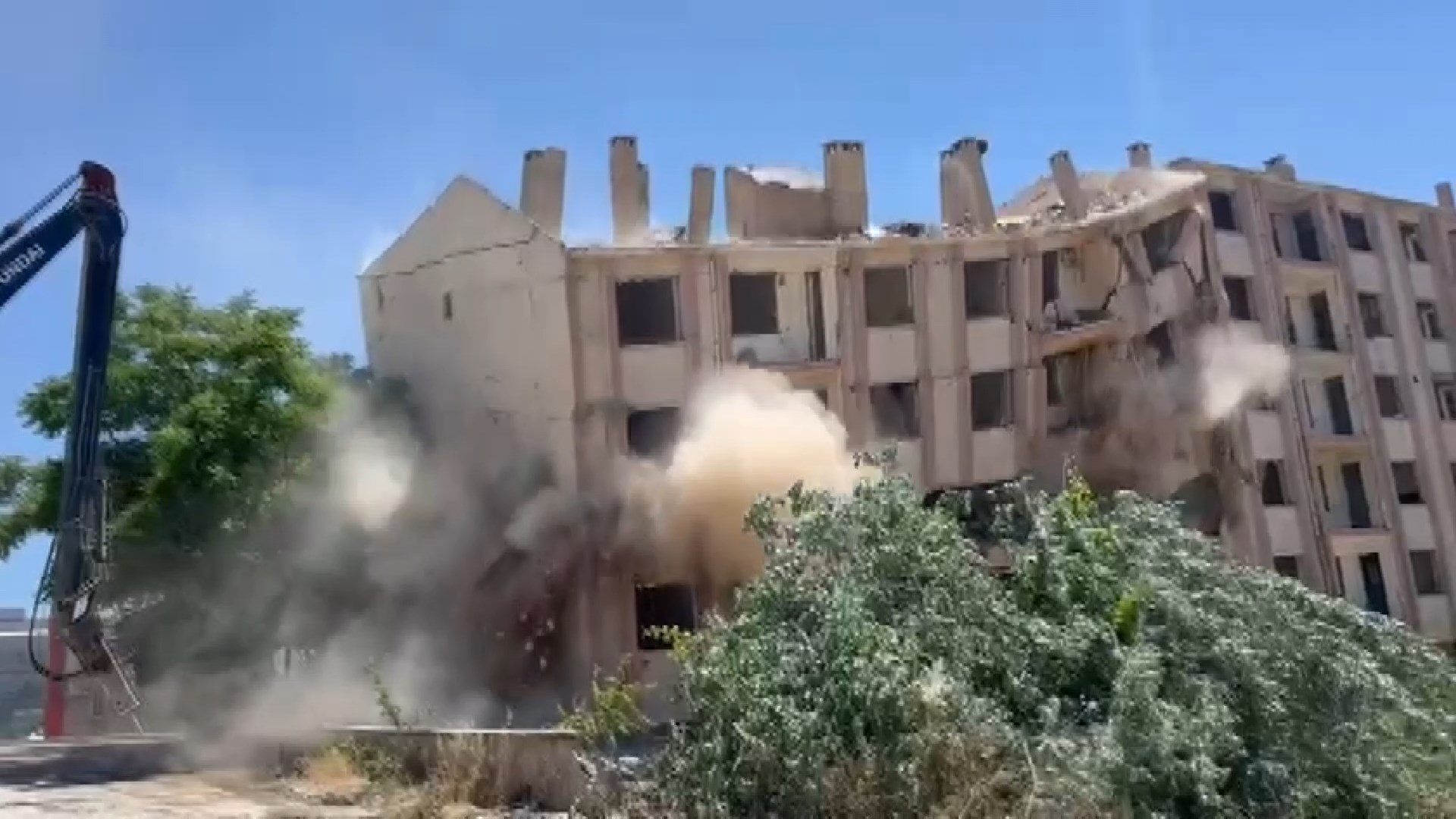Kahramanmaraş merkezli 6 Şubat 2023 depremlerinde ağır hasar alan Abdullahpaşa Mahallesindeki 5 katlı bir bina, iş makinasıyla kontrollü şekilde yıkıldı. Yıkım çalışmaları sırasında güvenlik önlemleri alınırken, o anlar çevredekiler tarafından cep telefonu kamerasıyla kaydedildi.