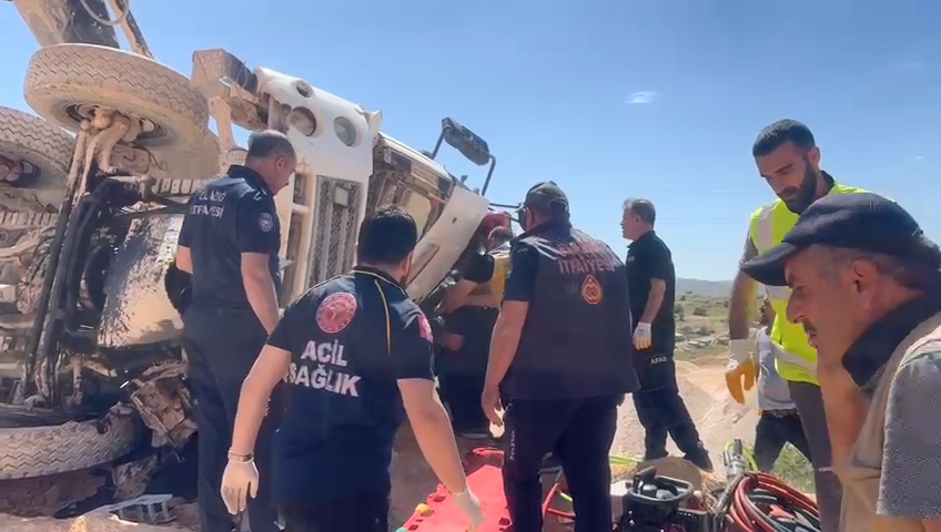 Kaza, akşam saatlerinde Güneykent Mahallesi’ndeki bir beton şantiyesinde meydana geldi. Ö.T. yönetimindeki plakası öğrenilemeyen kamyon, sürücüsünün direksiyon kontrolünü yitirmesi sonucu yol kenarına devrildi. Kazada şoför kabininde sıkışan Ö.T. yalanırken, ihbarla bölgeye sağlık, itfaiye, AFAD ve polis ekipleri sevk edildi. Yaralı şoför, itfaiye ekiplerinin çalışmasıyla bulunduğu yerden çıkarılıp, sağlık ekiplerince Fethi Sekin Şehir Hastanesine kaldırılarak tedaviye alındı. Ö.T.nin hayati tehlikesinin bulunduğu öğrenildi. Kazayla ilgili inceleme başlatıldı.
