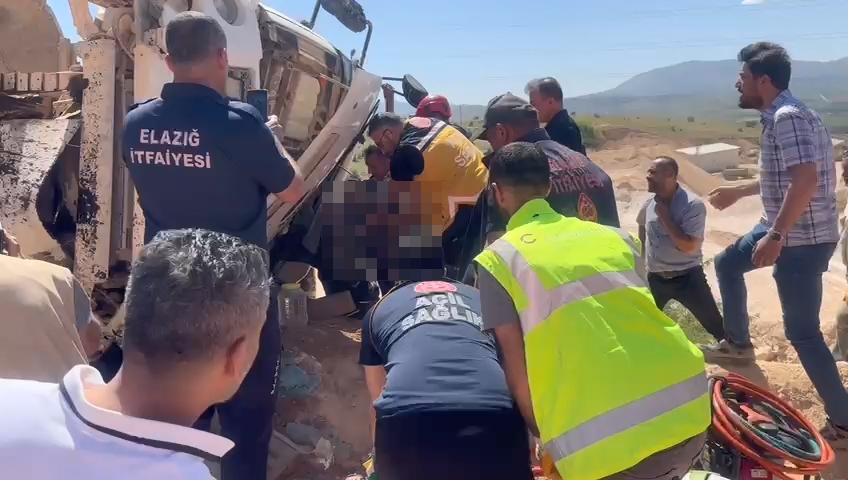 Elazığ’da, beton şantiyesinde devrilen kamyonun şoförü ağır yaralandı