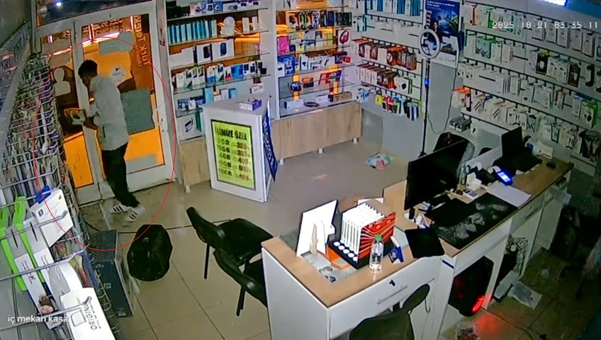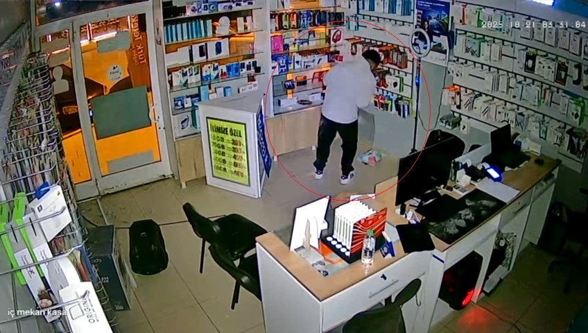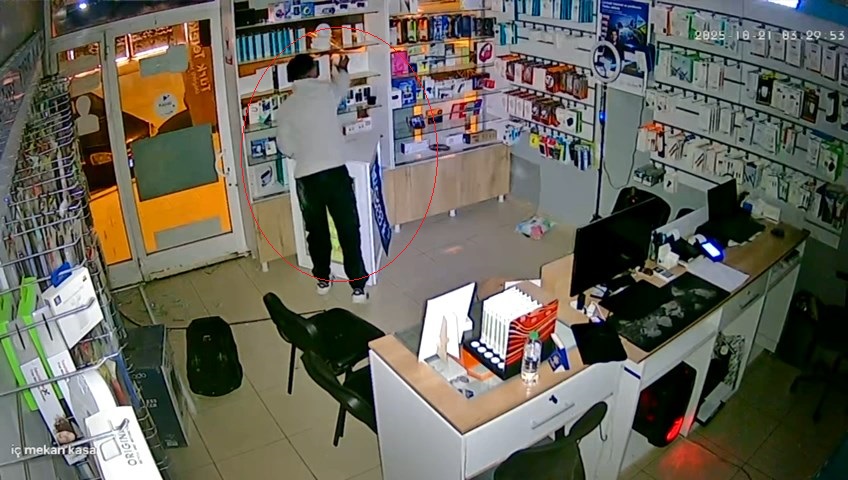 Olay, saat 03.00 sıralarında Üniversite Mahallesi’nde bulunan bir telefon bayisinde meydana geldi. İş yerine giren kişi, yaklaşık 70 bin TL değerinde cep telefonu ve tableti çaldı. Hırsızlık anı ise iş yerinin güvenlik kamerasına yansıdı. Sabah saatlerinde kapının zorlanarak açıldığını ve ürünlerinin çalındığını fark eden iş yeri sahibi, durumu polis ekiplerine bildirdi. Olay yerine gelen Asayiş Şube Müdürlüğü Hırsızlık Büro Amirliği ekipleri, güvenlik kamerası kayıtlarını incelemeye alarak şüphelinin yakalanması için çalışma başlattı.