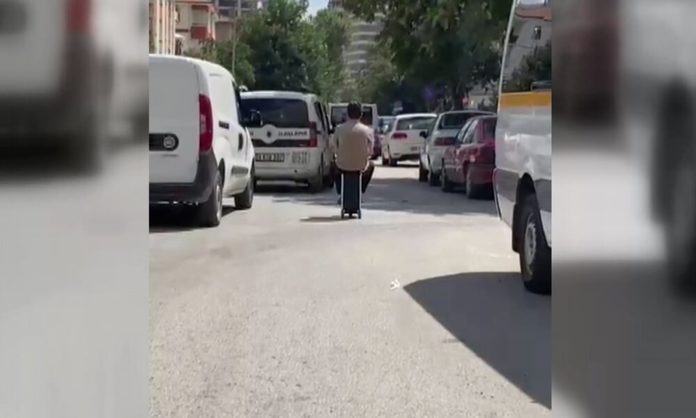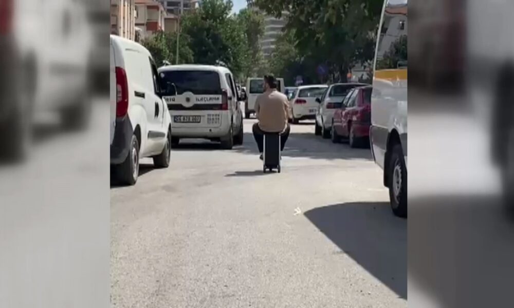 Altındağ ilçesindeki Akköprü kavşağında elektrikli skuter valizle trafikte yolculuk yapan kişi dikkat çekti. Trafiğin yoğun olduğu yolda valiz üzerinde oturarak seyreden kişi, başka bir sürücü tarafından cep telefonu kamerasıyla görüntülendi. Görüntüler, sosyal medyada paylaşıldı.