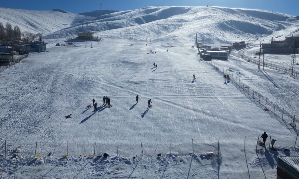 Elmadağ’da kızaklı kayak keyfi