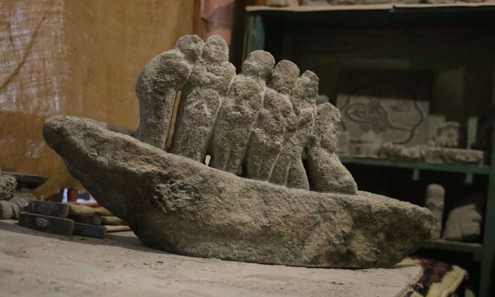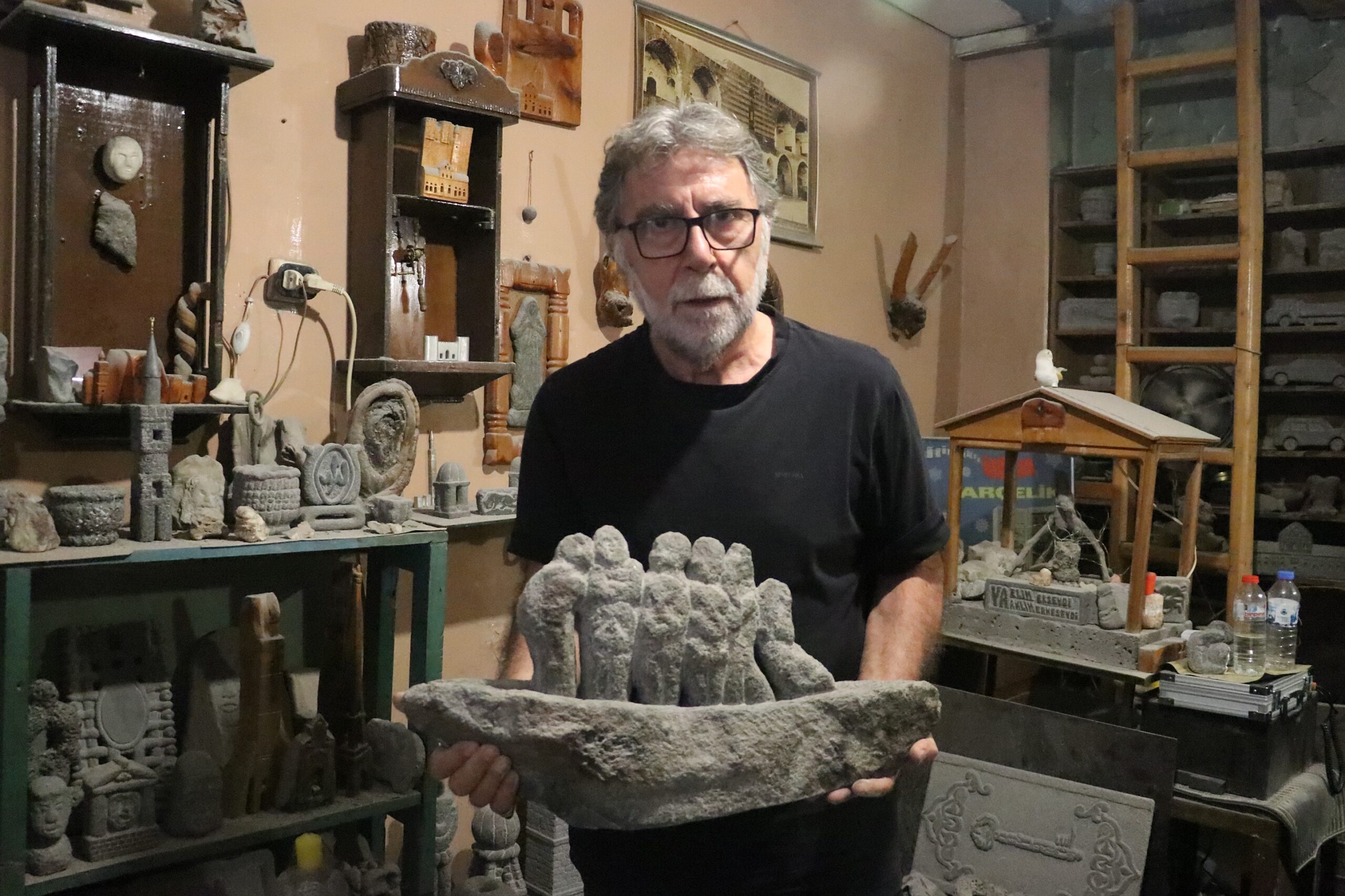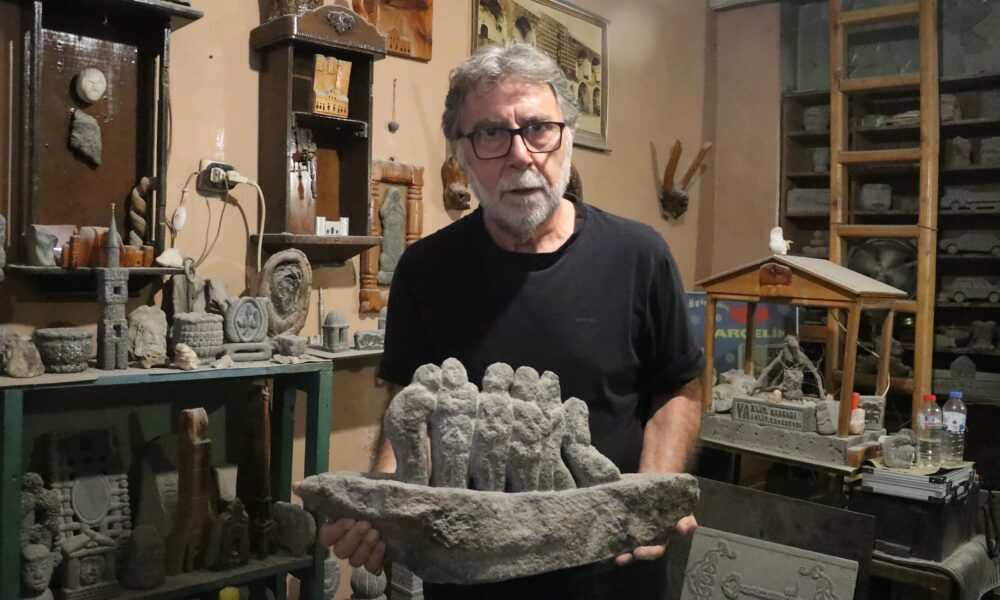Emekli Fransızca öğretmeni, bu kez de Karacadağ taşından ‘Nuh’un Gemisi’ figürü yaptı