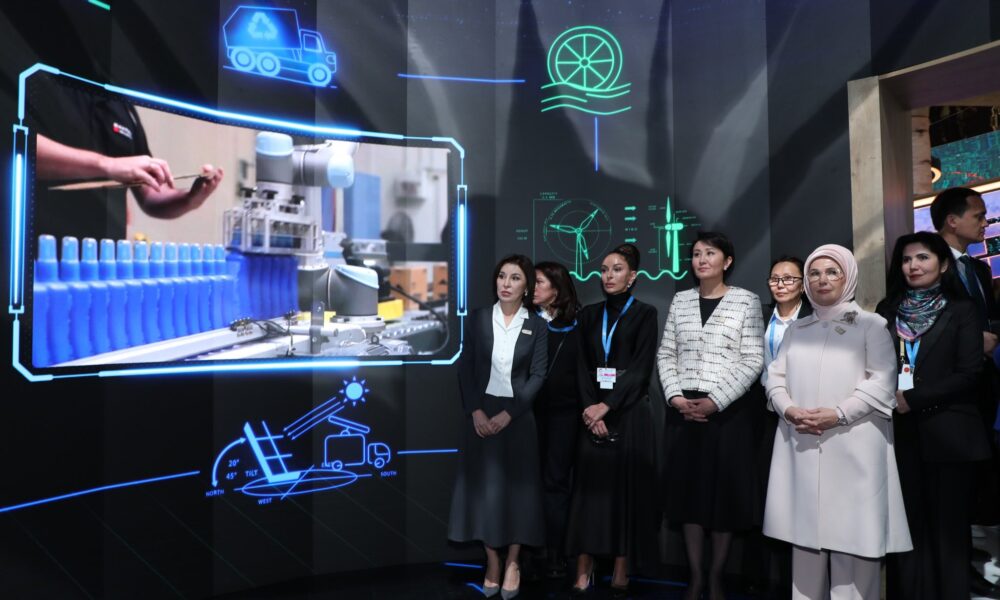 Türk milletlerinin ana vatanı Orta Asyanın da bu küresel sorunun etkilerini derinden yaşadığına dikkati çeken Emine Erdoğan, “Medeniyetimizin doğup yeşerdiği, bereketiyle tarihe geçmiş gönül coğrafyamızın eşsiz güzellikleri, böyle devam ederse yalnızca hatıralarımızda yaşayan birer masal olarak kalacak. Çocuklarımıza böyle karanlık ve ümitsiz bir gelecek miras bırakmayı kabul edemeyiz” değerlendirmesini yaptı.