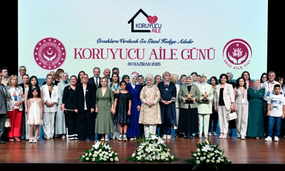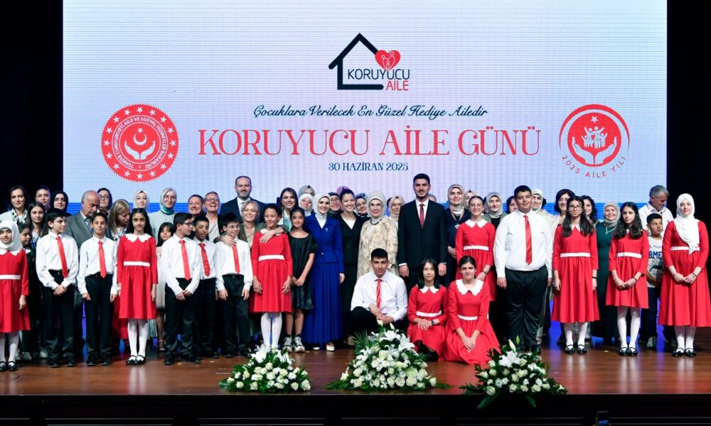 Emine Erdoğan, yüzlerce yıllık sağlam kökleri olan dayanışma kültürünün, bugün Koruyucu Aile Sistemi aracılığıyla devam ettiğini bildirdi. Korucuyu aile yanındaki çocuk sayısının bugün itibarıyla 10 bin 657ye ulaştığını aktaran Erdoğan, 8 bin 917 hanenin insanlık sanatının ustalıkla icra edildiği kalpten saraylara dönüştüğünü belirtti. Koruyucu ailelerin 7 bin 692si anne-baba çiftlerden oluştuğu gibi 1113 bekar koruyucu annenin ve 77 bekar koruyucu babanın da bulunduğuna dikkat çeken Erdoğan, “Elbette çocuk denildiğinde aklımıza önce anneler geliyor. Ancak ben burada çocuklarımıza kendilerini bir dağa yaslanmış gibi güvende hissettiren beyefendilere de hususi olarak çok teşekkür etmek istiyorum” diye konuştu.