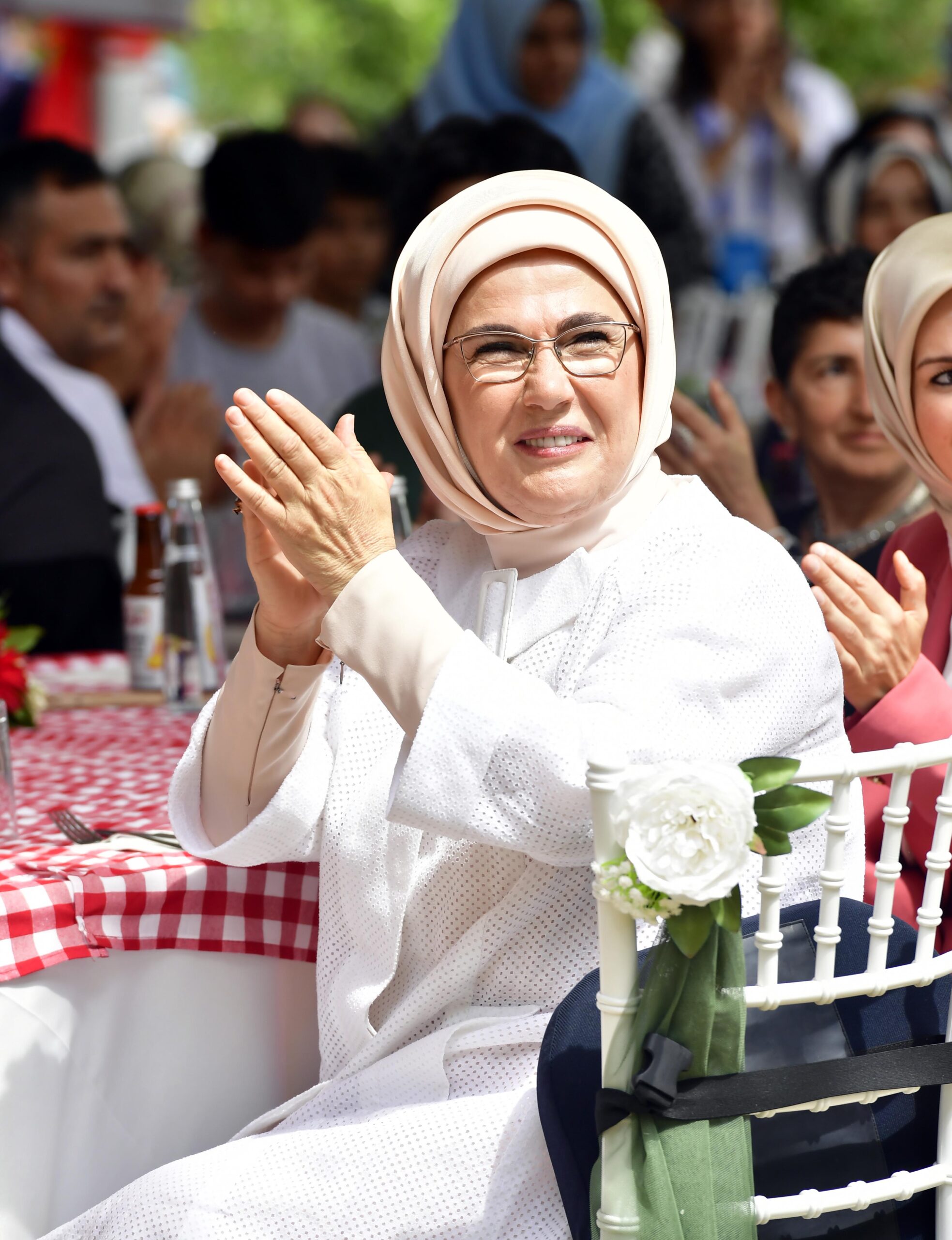 Emine Erdoğan, en büyük başarının anlamlı bir hayat yaşamak olduğunu vurgulayarak, “Bizim için her şeyden daha da önemli olan evlatlarımızın sağlıklı ruh ve beden gelişimlerini sağlamaktır, onların mutluluğu ve huzurudur. Sevgili çocuklarımızın, merhameti yeryüzüne hakim kılmak için çabalayan iyilik neferleri olabilmesini Rabbimden diliyorum. Ailenin ortadan kaldırılmaya çalışıldığı bir çağda, toplumu bir arada tutan kıymetli kurumlarımızı desteklemenin hepimizin asli görevi olduğu kanaatindeyim.” ifadelerini kullandı.