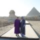 • Piramitler hakkında bilgi alan Emine Erdoğan, Entissar Amer ile piramitlerin en eskisi ve en büyüğü olan Keops Piramidi ve Sfenks Heykeli önünde de fotoğraf çektirdi. Fotoğraf: Ankara, (DHA)