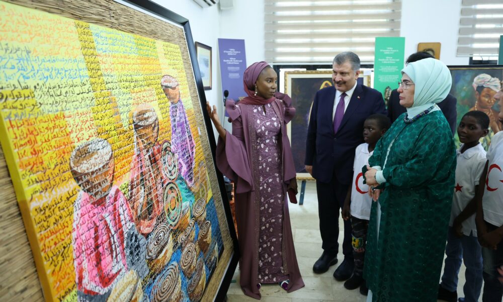 Emine Erdoğan, daha sonra Abujadaki Yunus Emre Enstitüsünü ziyaret etti. Burada Yunus Emre Enstitüsü Müdürü Musa Erbaş, Nijerya Kadın Sanatçılar Birliği Başkanı Maryam Maigida ve Afrikalı çocuklar tarafından karşılanan Emine Erdoğan, Nijerya Kadın Sanatçılar Birliği Sergisinin açılışını yaptı. Açılış kurdelesini Sağlık Bakanı Fahrettin Koca ve Afrikalı çocuklarla kesen Emine Erdoğan, kadın ressamların yaptığı 12 eseri inceledi, eserlere ilişkin bilgi aldı. Emine Erdoğan, daha sonra Yunus Emre Enstitüsünde Türkçe öğrenen Nijeryalı çocuklarla bir araya geldi. Nijeryalı öğrenciler tarafından gerçekleştirilen flüt dinletisinde Katibim eseri de sunuldu. Ayrıca çocuklar tarafından ezberlenen İstiklal Marşının 10 kıtası seslendirildi. Emine Erdoğan, çocuklarla sohbet edip, fotoğraf çektirdi.
