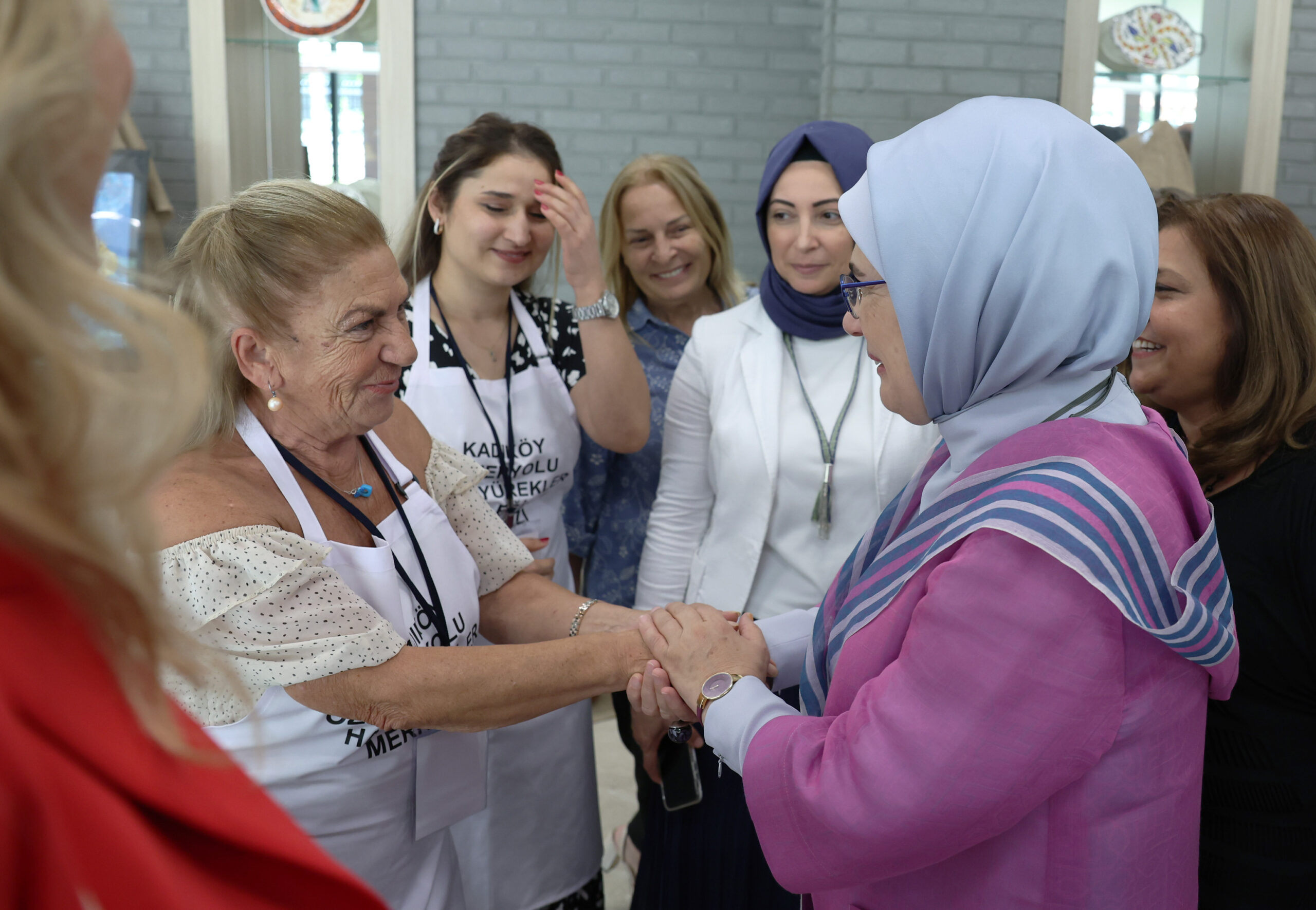 Türkiye’de 18 yaş üzeri yetişkin engellilere yönelik hizmete alınan Feneryolu Özel Yürekler Halk Eğitim Merkezi’nin açılışını yapan Emine Erdoğan, ilk olarak yiyecek-içecek atölyesine uğradı. Hafif düzey zihinsel engelli öğrencilerin şeflerinden yaptıkları çalışmalarla ilgili bilgi alan Erdoğan, sohbet ettiği öğrencilerin hazırladığı soğuk ayran aşı çorbasını da tattı. Buradan hafif otizm tanılı öğrencilerin spor ve fiziksel aktivitelerde bulunduğu alana gelen Erdoğan, masa tenisi oynayan öğrencileri izledi. Erdoğan, masa tenisindeki başarılarından dolayı öğrencileri tebrik etti. Emine Erdoğan, daha sonra orta-ağır tanılı zihinsel engelli bireylerin tarıma ilişkin eğitim aldığı atölyeyi ziyaret etti. Öğrenciler ve öğretmenleriyle sohbet eden Erdoğan, 22 yaşındaki Aziz Batuhan Ateş ile teraryum yaptı. Ateş ve Erdoğan, elleriyle kalp yaparak birbirlerine sevgilerini dile getirdi. Öte yandan Erdoğan, Bakan Özer ile merkezde atık malzemeler kullanılarak oluşturulan sıfır atık kütüphanesini de inceledi.