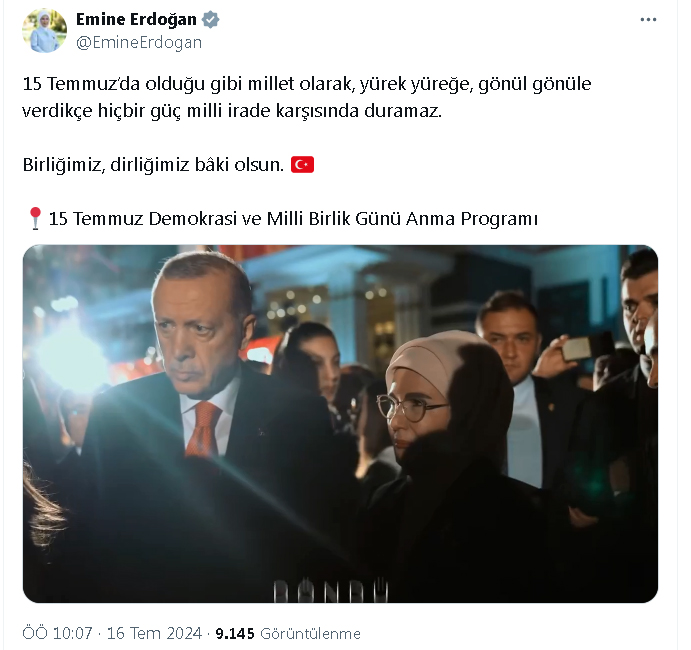 Emine Erdoğan’dan ’15 Temmuz’ paylaşımı