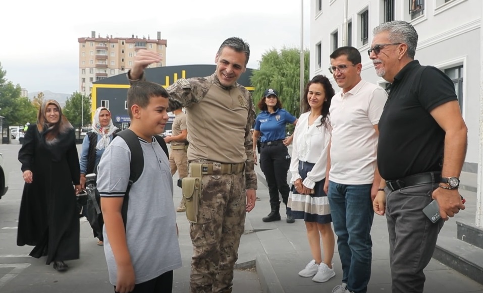 Emniyet müdürü, eğitim yılının ilk gününde şehit çocuklarını okuluna bıraktı