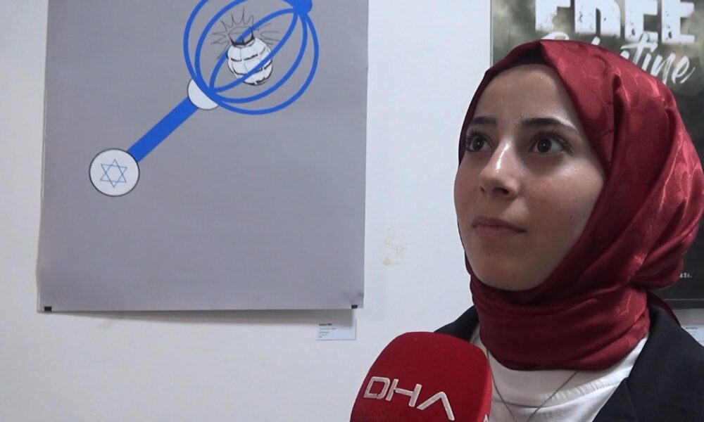 Aynı bölümden son sınıf öğrencisi Esra Ülkü Doğan ise “Çünkü Gazzede en acımasız saldırı onlara. Onun için daha çok bebeklerin ölümünü ele almak istedim. Yapılan saldırıyı bombayla anlattım ve bebekleri ele aldığı için emzikle birleştirdim. Masumiyete yapılan saldırı bence kabul edilmemeli. Sesimizi duyurabildiğimiz kadar duyurmalıyız” diye konuştu.