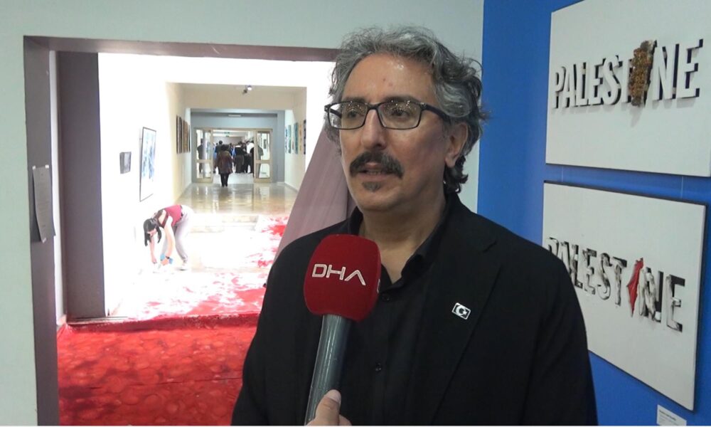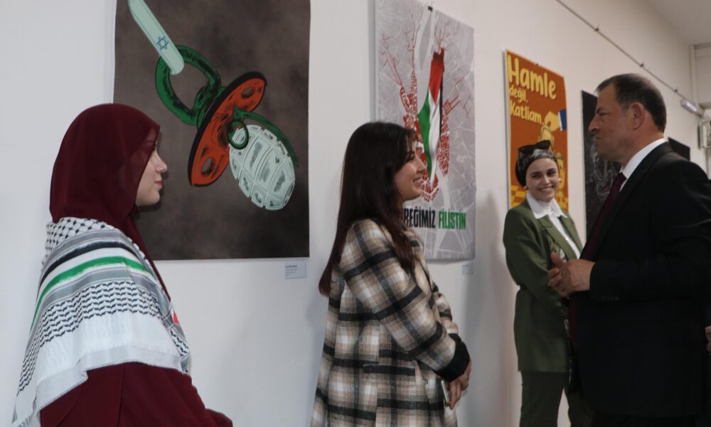 Güzel Sanatlar Fakültesi Dekanı Prof. Dr. Bünyamin Aydemir, okul koridorlarını sergi salonuna dönüştürdüklerini söyledi. Bütün bölümlerin sergiye katkı sağladığını kaydeden Aydemir, “Soykırım uygulayan İsrailin en önemli karakteristik unsuru özellikle çocuklara odaklanarak bir katliam gerçekleştirmeleri. 17 binin üzerinde çocuk ölümü var. Kadın ölümleri de yine 17 binin üzerinde. İsrail özellikle bunu yapıyor. Amacımız bir ajitasyon yapmak değil, amacımız olanı yansıtmak. Olan da hakikaten bu. Özellikle Filistinli çocuklar üzerine odaklanan bir soykırım” dedi.