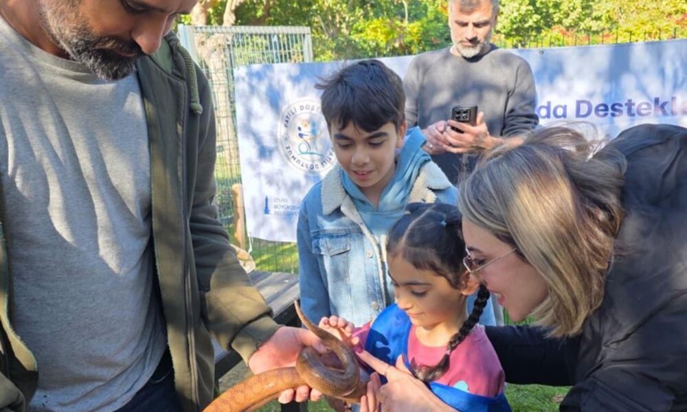 İzmir'de engelli çocuklar ebeveynleri ile birlikte Doğal Yaşam Parkı'ndaki lemur barınağını ziyaret etti.Fotoğraf:İzmir,(DHA)