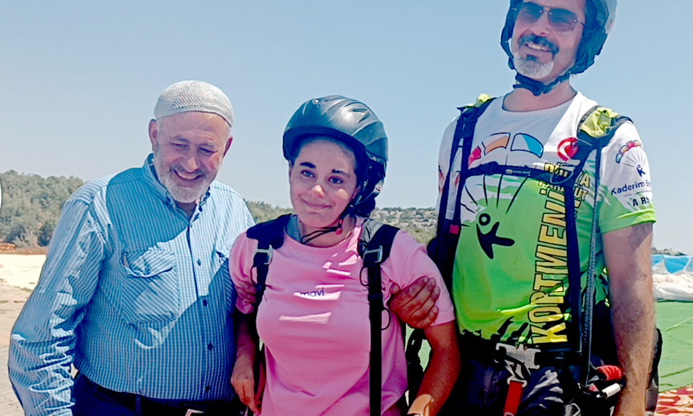 Sakcagözü Mahallesi’nde yaşayan Nisanur Arapoğlu, 8 yaşında geçirdiği havale nedeniyle bedensel engelli kaldı. Arapoğlu, geçen yıl mahallede depremzedelere moral amacıyla oluşturulan yamaç paraşüt pisti etkinliklerini evinde izledi. Yamaç paraşütü yapanları izlerken heyecanlanan Nisanur Arapoğlu’nun ailesi, durumu yamaç paraşütü organizatörü Kaderim Boyacı‘ya anlattı. Bunun üzerine Boyacı, 11 Ağustos günü hayalini gerçeğe dönüştürmek için Arapoğlu’nu evinden aldırdı. Kaderim Boyacı alana gelen Nisanur’u uçuşa hazırlayarak, birlikte havalandı. Bir süre havada süzülen Arapoğlu daha sonra belirlenen alana başarıyla iniş yaptı.