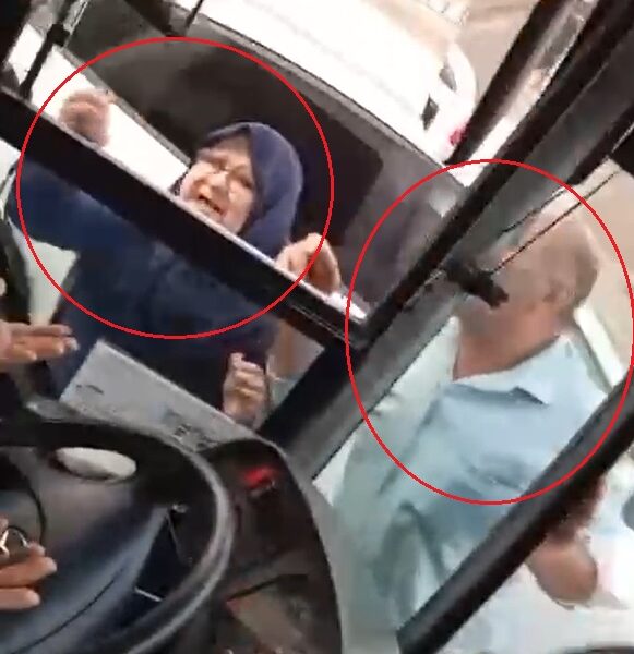 Engelli oğulları ile dolu otobüse binemeyen çift, aracın önüne geçip hareketine izin vermedi