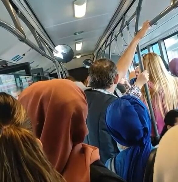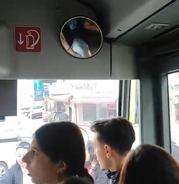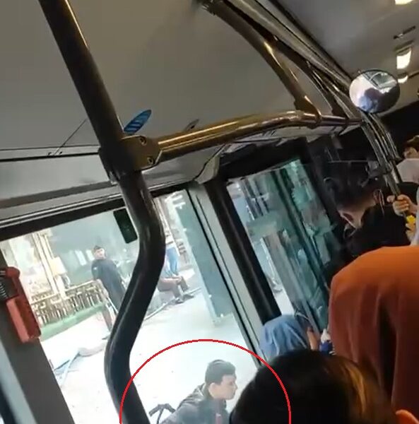 O anlar yolcular tarafından cep telefonu kamerasıyla görüntülenirken, çiftin çocuklarıyla otobüse binebilmesi için ise bazı yolcular araçtan indi. Engelli oğullarıyla hastaneye gitmek isteyen anne babanın binmesiyle otobüs seferine devam etti.