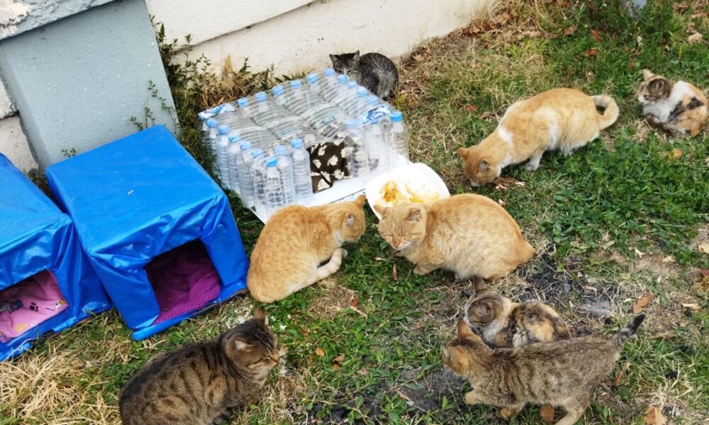 'Sıfır Atıkla Gülümseyen Patiler' projesi kapsamında atık malzemelerden tasarlanan kedi evleri, Iğdır Tenzile Erdoğan Bakım ve Rehabilitasyon Merkezi'nin bahçesine yerleştirildi. Fotoğraf: Iğdır, (DHA)