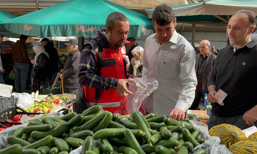 Engellilerden Deniz Gökdemir, pazardan sebze ve meyve alışverişi yapıp, ihtiyaç sahibi ailelere ulaştırmaktan oldukça mutluluk duyduklarını söyledi.