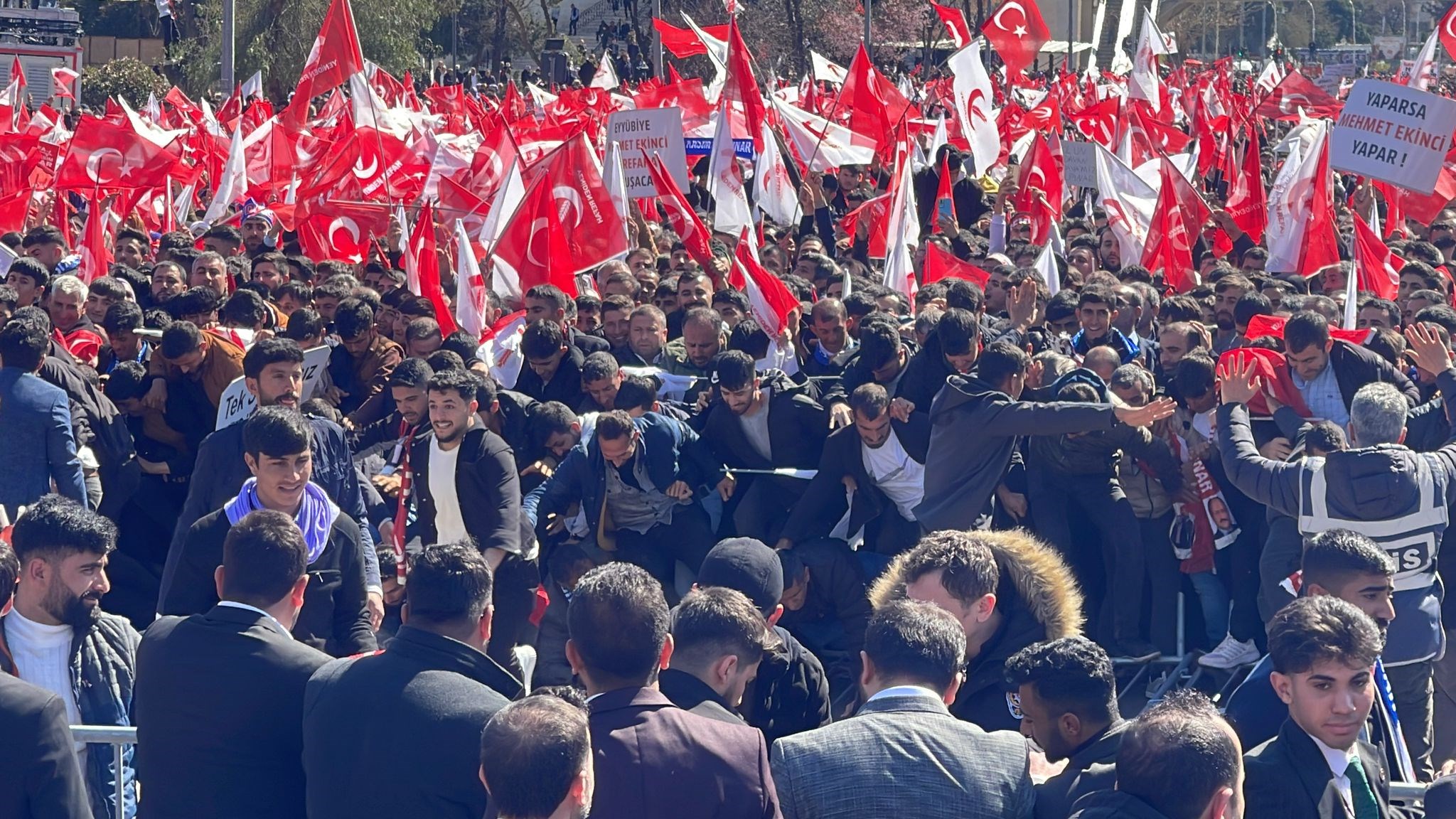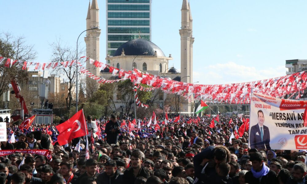 YENİDEN Refah Partisi Genel Başkanı Fatih Erbakan, Şanlıurfada 40 yıl sonra milli görüş belediyeciliğinin yeniden iş başına geleceğini söyledi.Yeniden Refah Partisi Genel Başkanı Fatih Erbakan, Şanlıurfa’da partisinin düzenlediği mitinge katıldı. Binlerce kişinin katıldığı mitingde konuşan Erbakan, Şanlıurfa Büyükşehir Belediye başkan adayı Mehmet Kasım Gürpınar ile Şanlıurfanın yeniden milli görüş belediyeciliği ile buluşacağını belirterek, “1984te Şanlıurfada milli görüş belediyeciliği ile tanıştı. Şimdi, 40 yıl sonra 31 Martta tekrar Büyükşehir Belediye başkan adayımız Mehmet Kasım Gülpınarın yönetiminde milli görüş belediyeciliği başlayacak. Bu muazzam manzara Şanlıurfaya yakışır. 200 binin üzerinde insanla Şanlıurfa bugün mesajını net bir şekilde veriyor. Bütün engellemelere, ambargolara rağmen, bütün güç ellerinde olmasına rağmen Allah haklının kazanmasını istiyor. Milletimiz neden Yeniden Refaha koşuyor? Çünkü bu millet rantçı belediyeden bıktı artık. Değişim istiyor, samimi, dürüst, tevazu sahibi belediye başkanları istiyor. Milletin derdi ile dertleneceğine kendi makam aracı ile dertlenen, millet ile arasına mesafe koymuş belediyeleri istemiyor” dedi.Öte yandan miting alanının kalabalık olması nedeniyle alanda sıkışan bir grup ise bariyerlerin yıkması sonucu ezilme tehlikesi geçirdi.