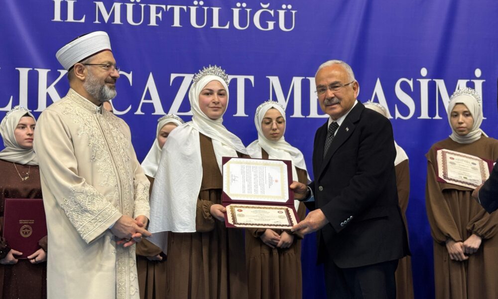 “Diyanet İşleri Başkanlığı’nda farklı unvanlarda görev yapan 150 bine yakın hocanın 50 bine yakını hamdolsun hafız, yani 3’te 1’i hafız. İnşallah sizler de eğitimlerinizi tamamladıktan sonra Diyanet İşleri Başkanlığı’nın mihraplarını, minberlerini, kürsülerini ya da Kur’an kurslarımızın sınıflarını hafızlığınız ile zenginleştireceksiniz” diyen Erbaş, şöyle konuştu: