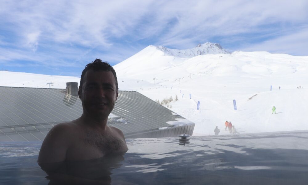 Erciyes Kayak Merkezi’nde eksi 10 derecede sıcak havuz keyfi