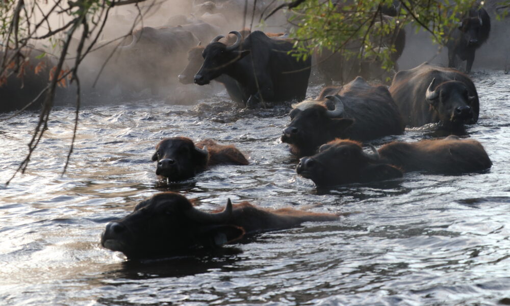 Akşama kadar sazlıkta yayılan mandalar, güneş batmadan önce de mahalledeki çamurlu gölde gün sonu banyosuna giriyor. Temizlenen 600 mandanın, suya girmeden önce çıkardığı toz bulutu ve su içinde banyo yapmaları izleyenleri etkiliyor. Ağustos sıcağında mandaların su içindeki görüntüleri, yerli ve yabancı fotoğraf tutkunları tarafından da görüntüleniyor. Bir süre suda serinleyen manda sürüsü, gölün diğer tarafında bekleyen sahipleri tarafından teslim alınarak sağım yapılmak üzere ahırlarına dönüyor.