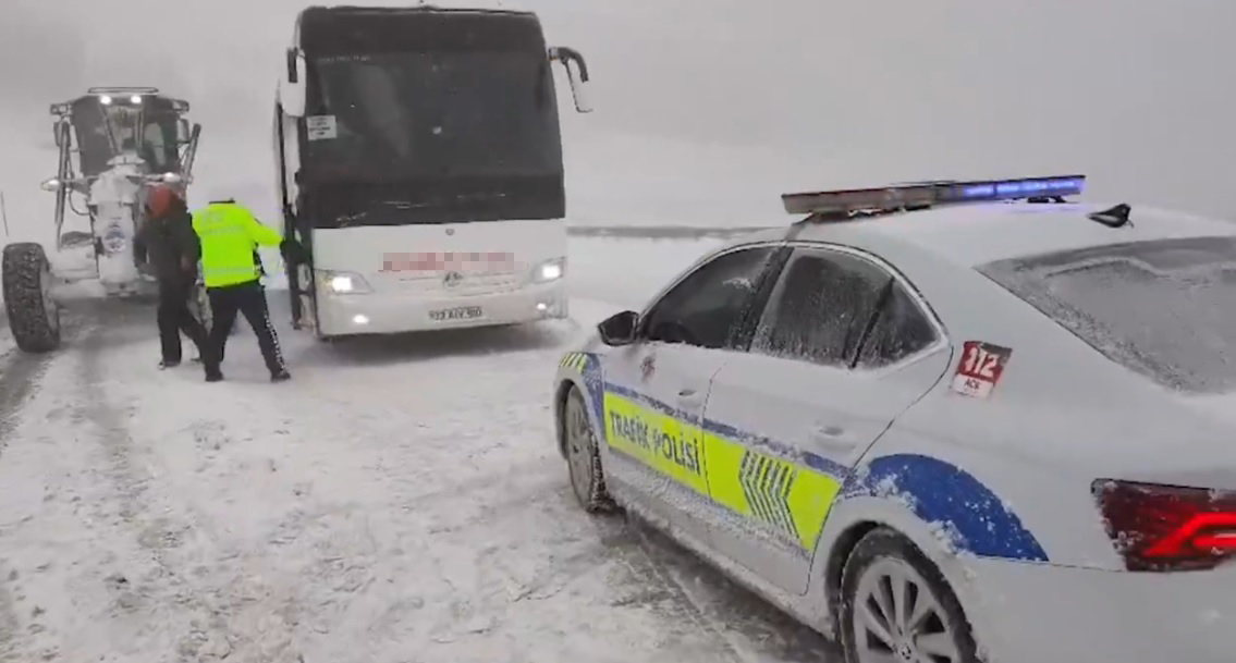 İl Emniyet Müdürlüğü Trafik Denetleme Şube Müdürlüğü ekipleri, yoğun tipi nedeniyle Kayseri- Erciyes yolu üzerinde tur otobüsünün hareket kabiliyetini yitirdiği bilgisi üzerine çalışma başlattı. Bu kapsamda, tur otobüsünde mahsur kalan 44 kişi, ekipler tarafından kurtarıldı. Kurtarılanlar, araçlarla şehir merkezine götürüldü.