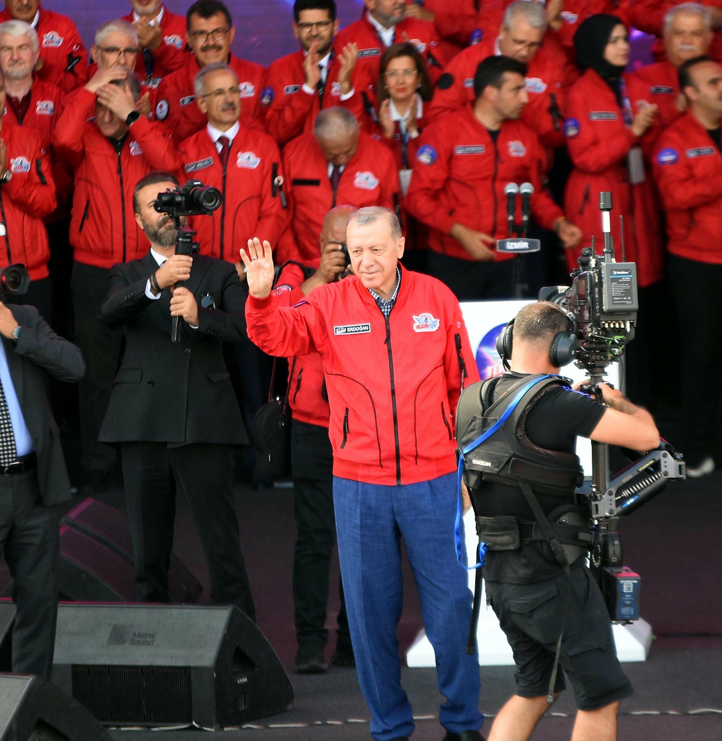 İzmir Çiğli Havalimanı’ndaki Havacılık Uzay ve Teknoloji Festivali TEKNOFEST’in üçüncü günü, Cumhurbaşkanı Recep Tayyip Erdoğan’ın katılımıyla gerçekleştirildi. Festivalde Cumhurbaşkanı Erdoğan’ın yanı sıra İçişleri Bakanı Ali Yerlikaya, Sanayi ve Teknoloji Bakanı Mehmet Fatih Kacır, Tarım ve Orman Bakanı İbrahim Yumaklı, AK Parti Genel Başkanvekili Binali Yıldırım, İzmir Valisi Süleyman Elban, Baykar Yönetim Kurulu Başkanı, T3 Vakfı Mütevelli Heyeti Başkanı ve TEKNOFEST Yönetim Kurulu Başkanı Selçuk Bayraktar, AK Partili İzmir milletvekilleri, ziyaretçiler yer aldı. Cumhurbaşkanı Erdoğan, TEKNOFEST alanında “Dünya lideri Tayyip Erdoğan” sloganlarıyla karşılandı. TEKNOFEST’te gençlere seslenen Cumhurbaşkanı Recep Tayyip Erdoğan, “Başkaları ne yaparsa yapsın, hangi ihtiraslar peşinde koşarsa koşsun, biz sizin için koşturmaya devam edeceğiz. Seçim döneminde ‘gençlerin demokrat dedesi’ maskesi takanların söz konusu koltukları olunca nasıl faşizan hale geldiklerini hepimiz görüyoruz. Daha düne kadar dürüstlükten, şeffaflıktan bahsedenlerin iktidar uğruna birbirlerine nasıl yalan söylediklerini de hep beraber takip ediyoruz. Gençlerimiz de hayal kırıklığına yol açan bu utanç sahnelerine rağmen biz siyasete güvenin zedelenmemesi için duruşumuzu asla bozmayacağız. Özellikle siz gençlerimize karşı daima harbi ve hasbi davranacak, aramızdaki gönül bağının sarsılmasına müsaade etmeyeceğiz. Rabbim hepinizden razı olsun” ifadelerini kullandı.