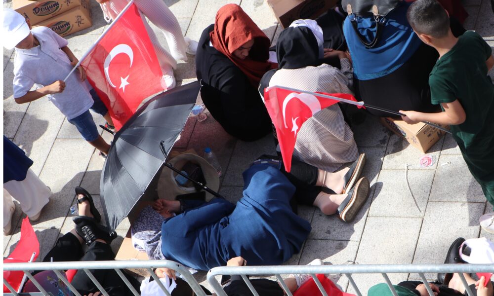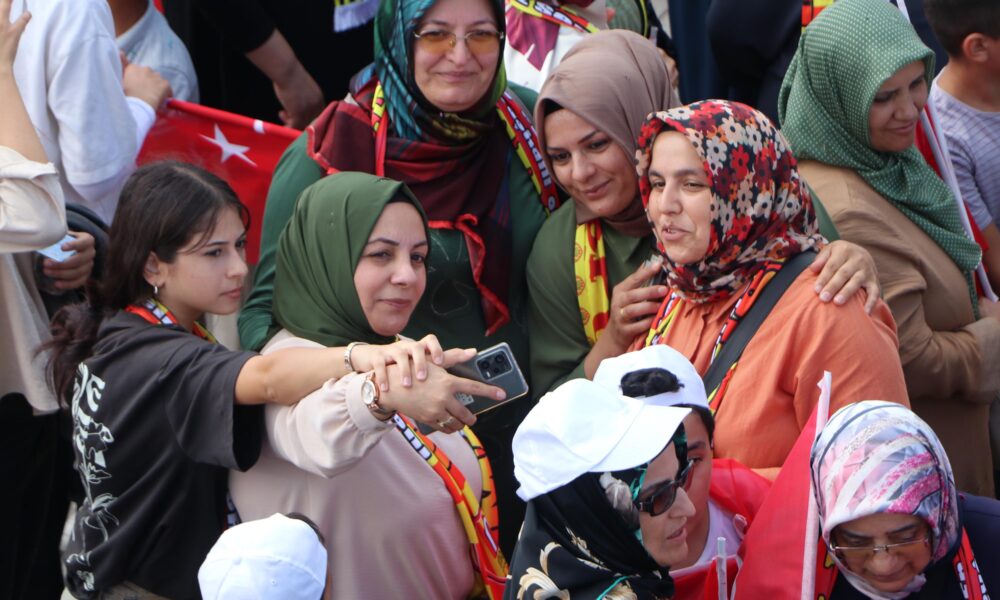 Cumhurbaşkanı Recep Tayyip Erdoğan, dün Bitlis’in Ahlat ilçesindeki etkinliklerin ardından bugün Malazgirt ilçesinde Malazgirt Meydan Muharebesi Tarihi Milli Park’taki miting alanına gelerek konuşma yapacak. Türkiye’nin dört bir tarafından miting alanına gelen vatandaşlar, Erdoğan’ı yakından görebilmek için ön sırada yer aradı. Malazgirt ilçesine erken saatlerde Elazığ’dan gelen 4 çocuk annesi Şerefnaz Özçelik de ön sıradaki yerini aldıktan sonra şemsiyesini açıp uyuyarak şekerleme yaptı. Tören alanındaki birçok kadın günün anısına bol bol selfie çekilip çalınan müzik eşliğinde halaylar çekti.