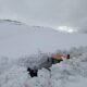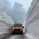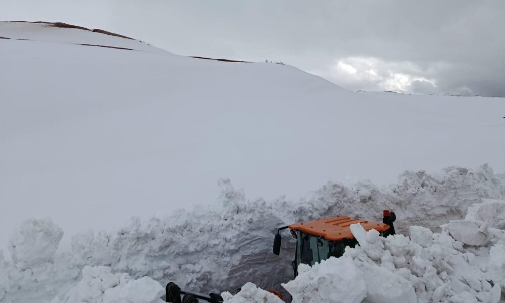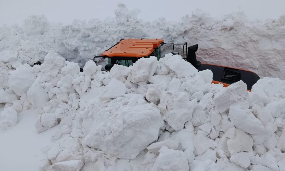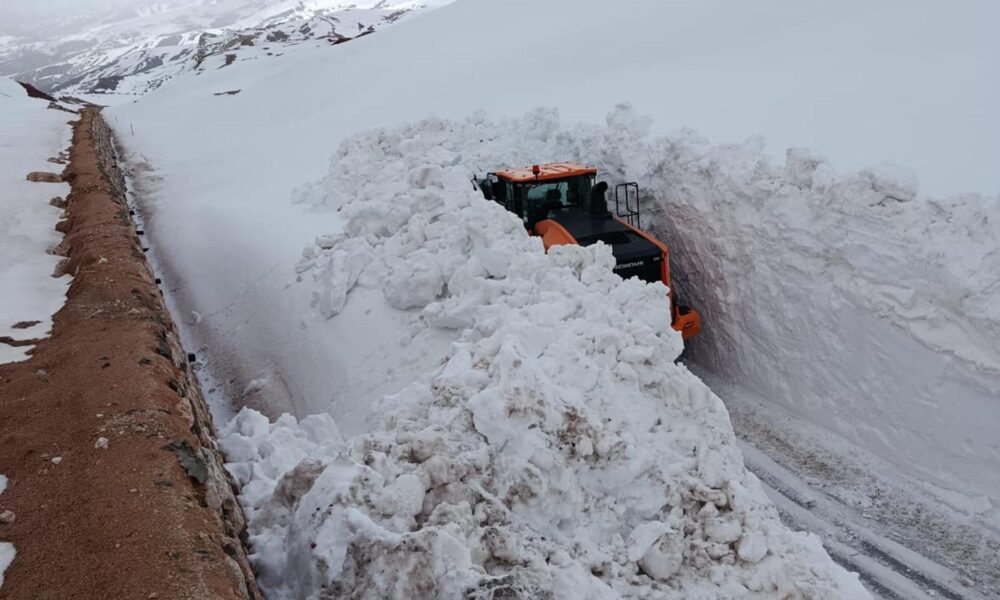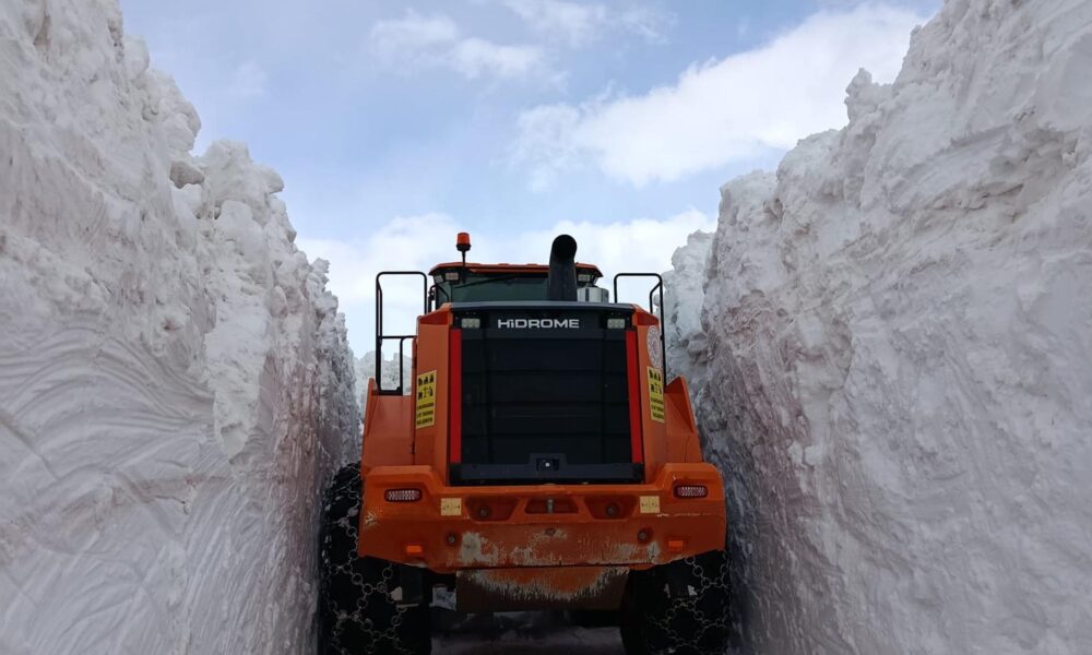 Yoğun kar yağışı ve tipi nedeniyle bir süredir ulaşıma kapalı olan ve kar kalınlığının yer yer 4 metrenin üzerine çıktığı kara yolunda ekipler, iş makineleriyle yolu açmak için çalışıyor. Kar kalınlığının iş makinesinin boyunu aştığı bölgede iş makineleri kar kütlelerini güçlükle temizliyor. Karayolları ekipleri, ulaşımın yeniden başlaması için kar temizliğini sürdürüyor.