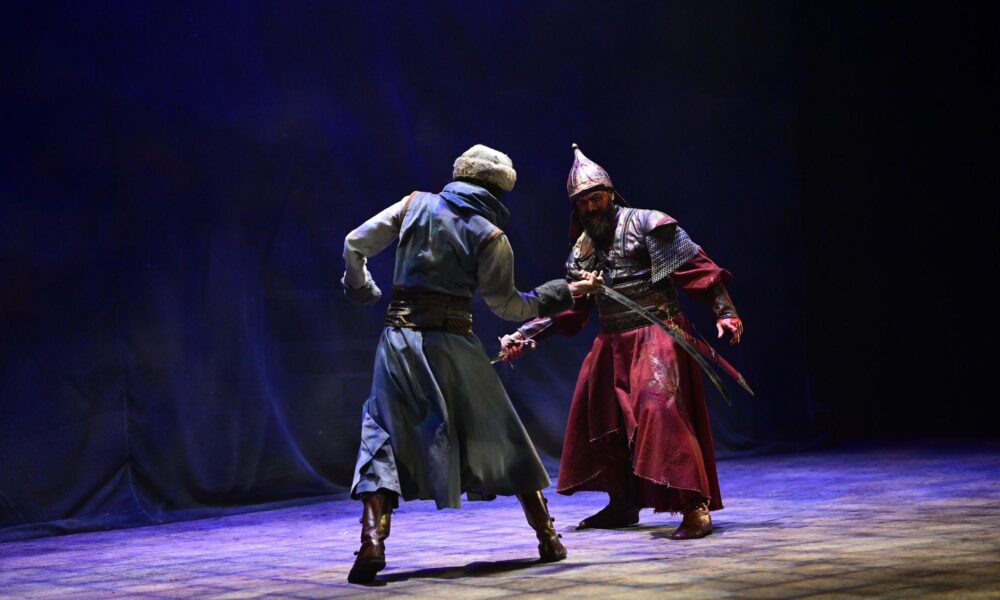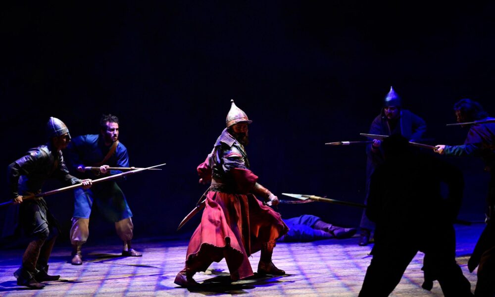 • Erzurum Devlet Tiyatrosu’nda tarihi bir mücadele sahneleniyor. Ankara Savaşı’nda karşı karşıya gelen Yıldırım ve Timur’un mücadelesini anlatan oyun, izleyenlerden ilgi gördü. Fotoğraf: Erzurum, (DHA)